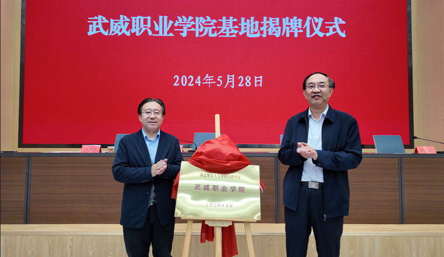 5月28日下午,西北師范大學(xué)中外寫作中心武威職業(yè)學(xué)院基地揭牌儀式暨報(bào)告會(huì)在武威職業(yè)學(xué)院能源科技樓一樓學(xué)術(shù)報(bào)告廳隆重舉行。