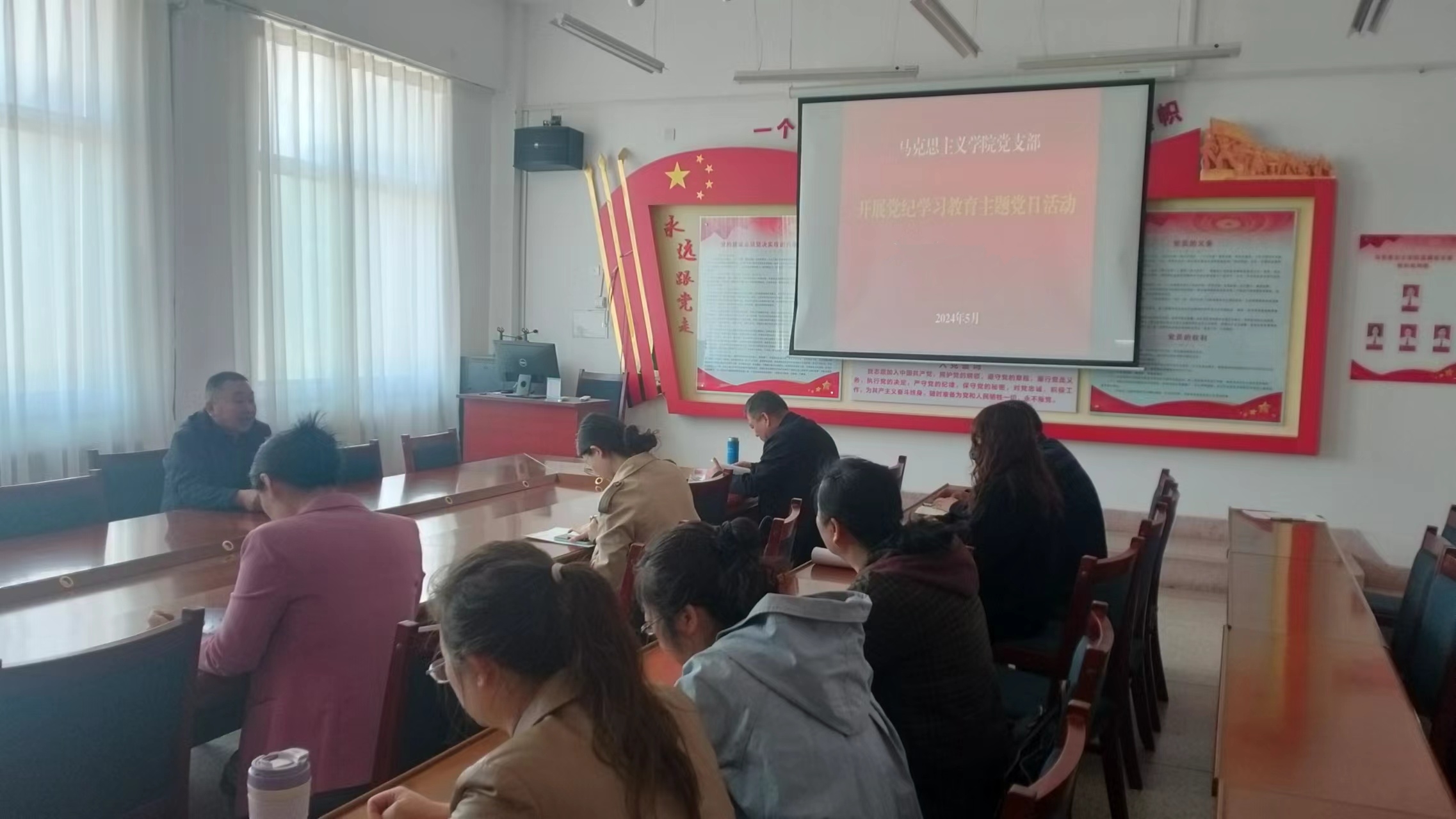 5月10日,馬克思主義學(xué)院黨支部召開黨紀(jì)學(xué)習(xí)教育專題學(xué)習(xí)會(huì),馬克思主義學(xué)院黨支部書記劉心主持,全體黨員參加會(huì)議。