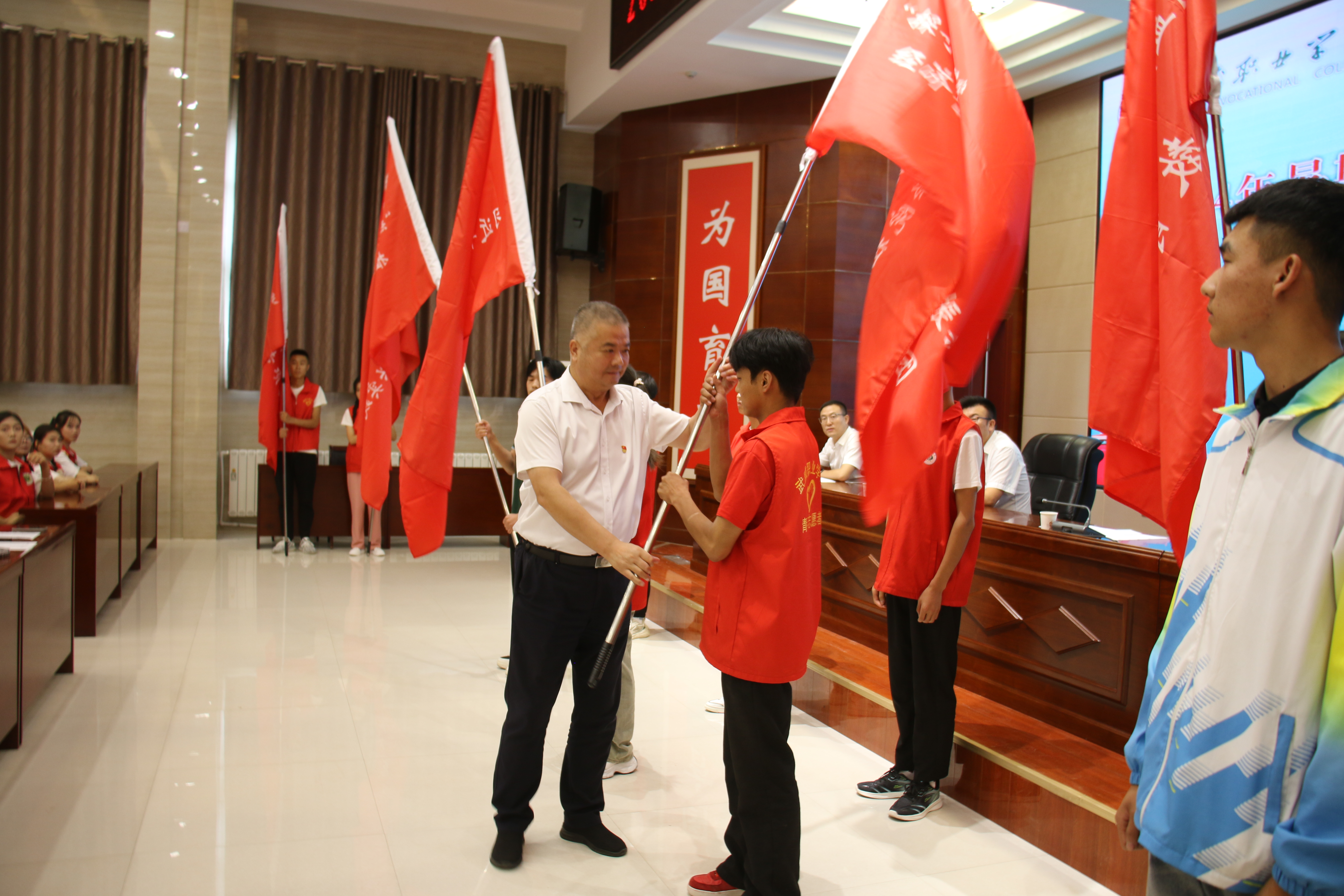 儀式上,科技處副處長謝麗霞介紹了暑期“三下鄉(xiāng)”社會實踐活動的組隊情況;學生工作部部長張世亮為校級重點立項團隊授旗;宣傳統(tǒng)戰(zhàn)部副部長劉吉仁對學校暑期“三下鄉(xiāng)”社會實踐活動的工作要點進行了解讀。