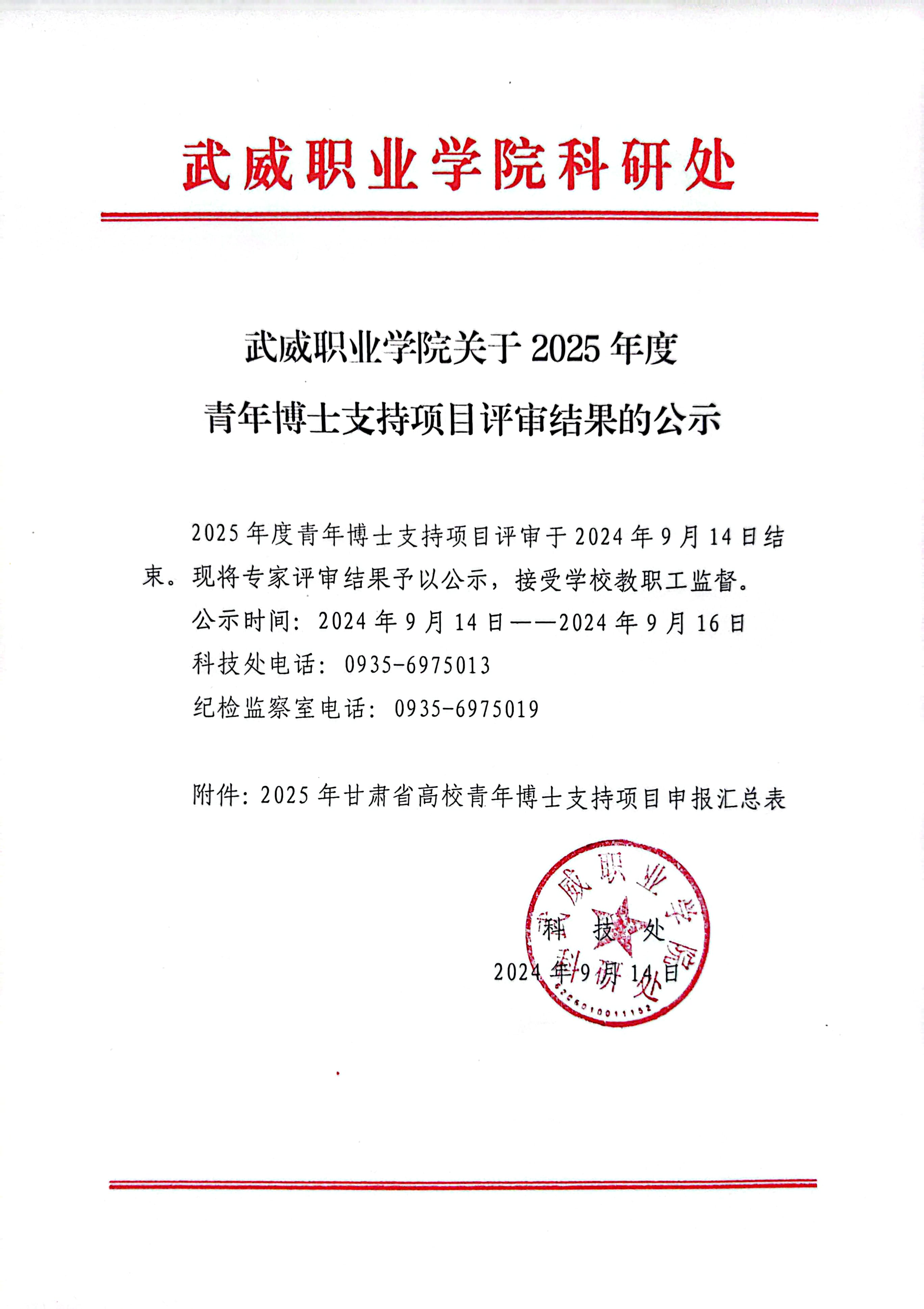 武威職業(yè)學(xué)院關(guān)于2025年度青年博士支持項(xiàng)目評審結(jié)果的公示