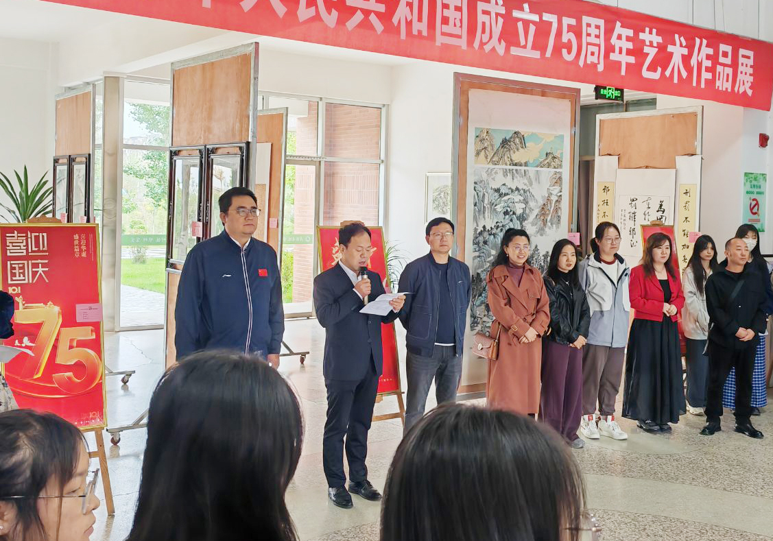 9月30日上午,藝術(shù)與教育學(xué)院慶祝新中國(guó)成立75周年藝術(shù)作品展在知新樓開幕。學(xué)院黨總支書記王政、副院長(zhǎng)蘆小鵬,美術(shù)教研室全體教師及學(xué)生代表參加了開幕式。