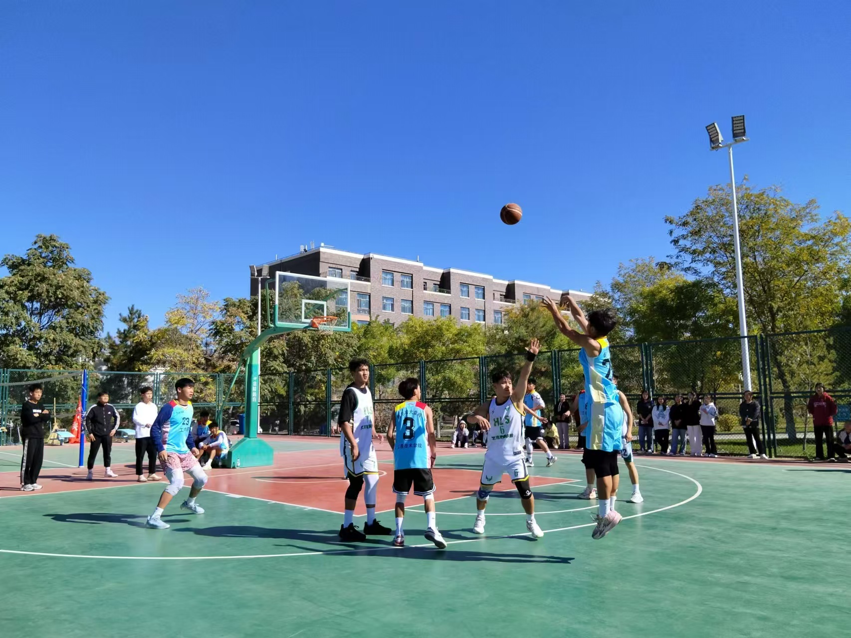 此次比賽歷時(shí)一月余,共9個(gè)二級學(xué)院參加。經(jīng)過48場次的激烈角逐,11月5日晚,在學(xué)校體育館舉行了男籃總決賽。賽場上,球員們積極拼搶,雙方隊(duì)員你來我往,攻防轉(zhuǎn)換,全力投入,搶斷、突破、跳投、遠(yuǎn)投,不時(shí)上演精彩的配合。