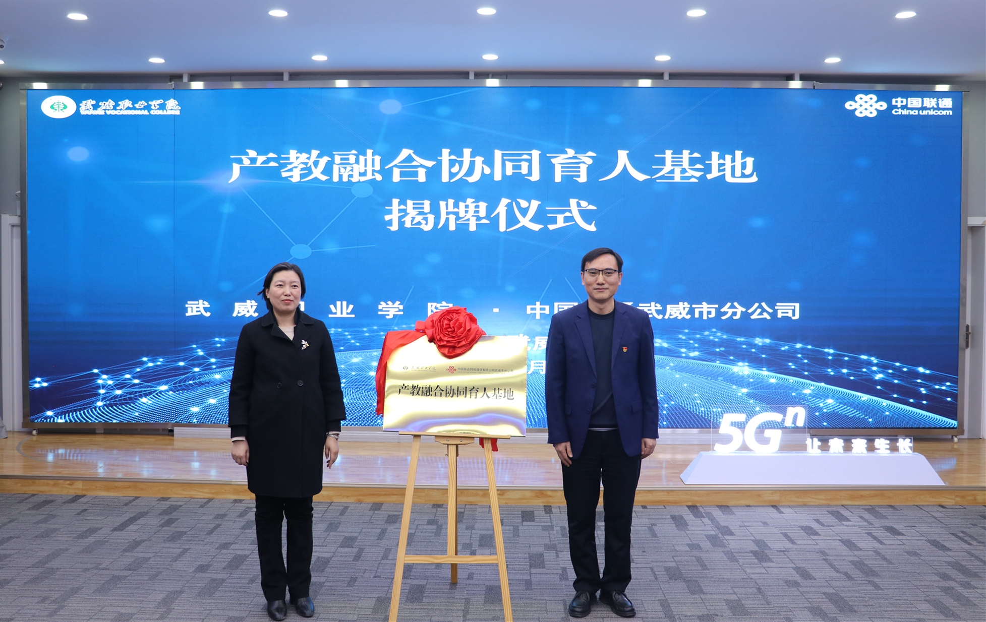12月19日,學(xué)校與中國聯(lián)通武威市分公司校企戰(zhàn)略合作協(xié)議簽約儀式在聯(lián)通數(shù)字經(jīng)濟(jì)創(chuàng)新展示中心舉行。武威市教育局局長王娟、中國聯(lián)通武威市分公司總經(jīng)理許勇、學(xué)校黨委書記王宏、校長李海軍出席簽約儀式。學(xué)校黨委委員、副校長何毅主持儀式。