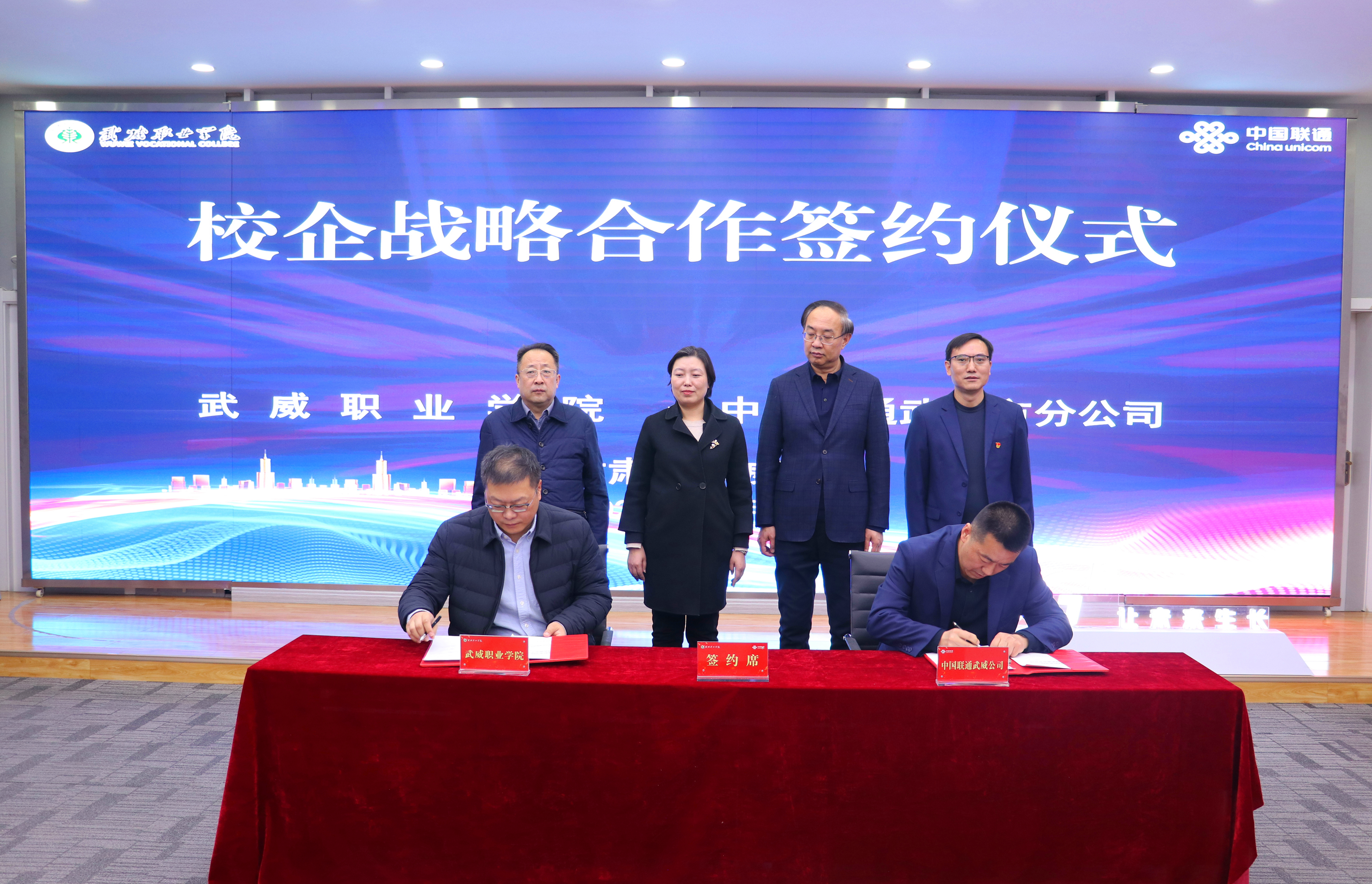 雙方簽署《武威職業(yè)學(xué)院與中國聯(lián)通武威市分公司校企戰(zhàn)略合作協(xié)議》。