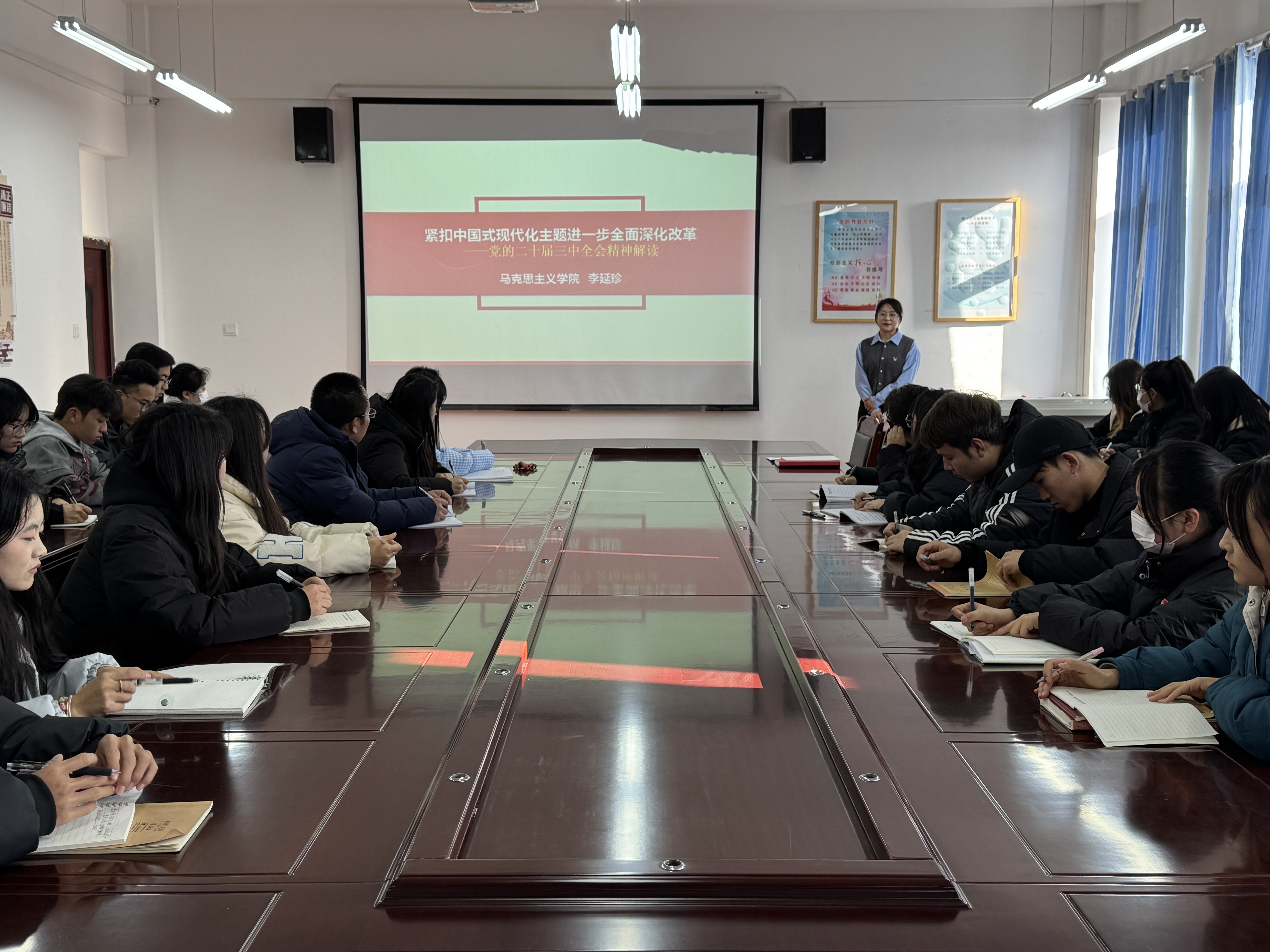 為深入學(xué)習(xí)貫徹黨的二十屆三中全會(huì)精神和習(xí)近平總書記視察甘肅重要講話重要指示精神,引導(dǎo)全校師生把思想和行動(dòng)統(tǒng)一到黨中央決策部署上來。12月19日下午,學(xué)院邀請(qǐng)學(xué)校宣講組成員、馬克思主義學(xué)院教師李延珍進(jìn)行黨的專題宣講解讀。醫(yī)學(xué)技術(shù)學(xué)院全體黨員參加活動(dòng)。