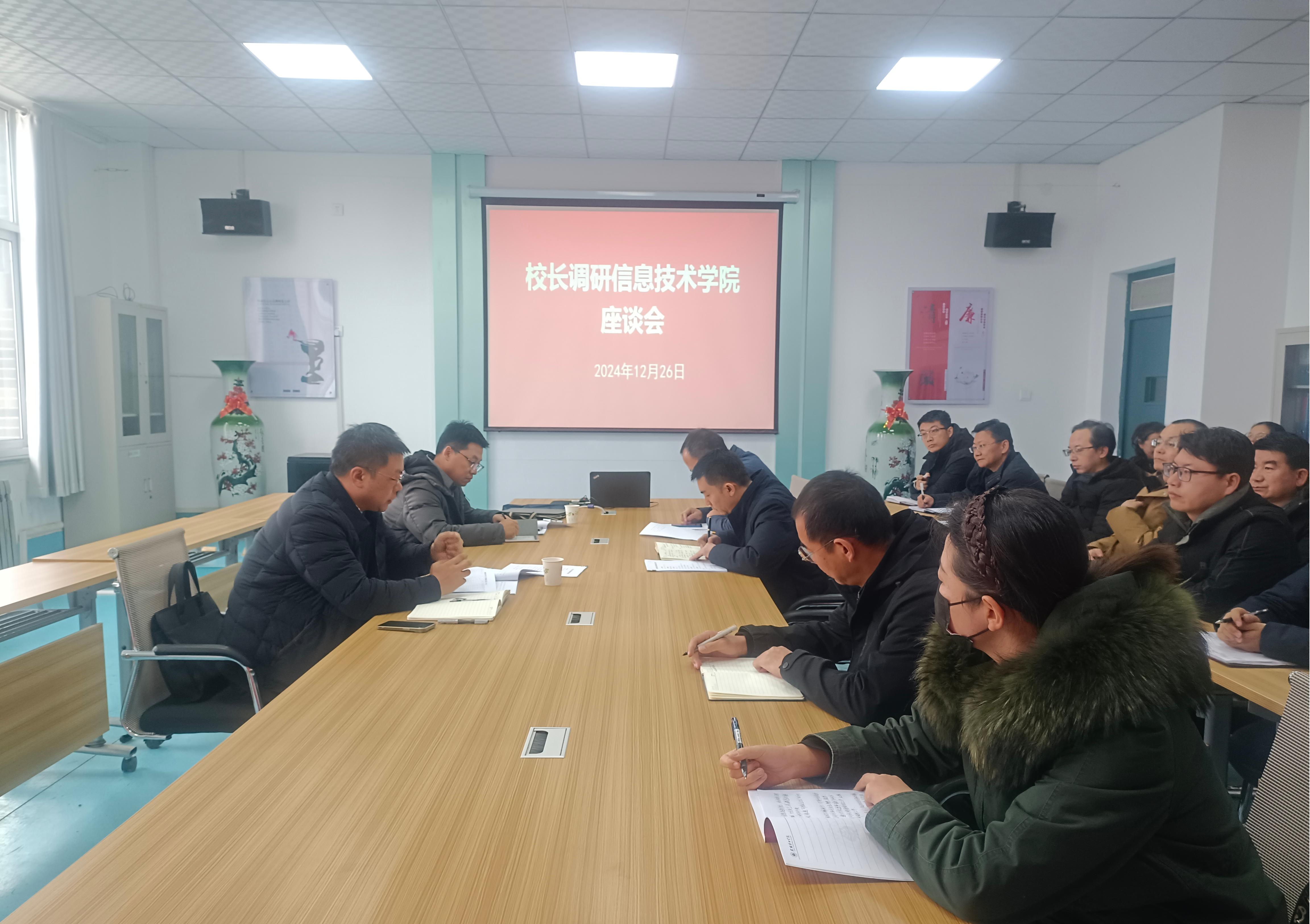 12月26日,校長李海軍深入信息技術(shù)學(xué)院,通過實(shí)地走訪、座談交流等形式開展調(diào)研,辦公室主任董鵬陪同調(diào)研。信息技術(shù)學(xué)院負(fù)責(zé)人和教師代表參加了調(diào)研活動。