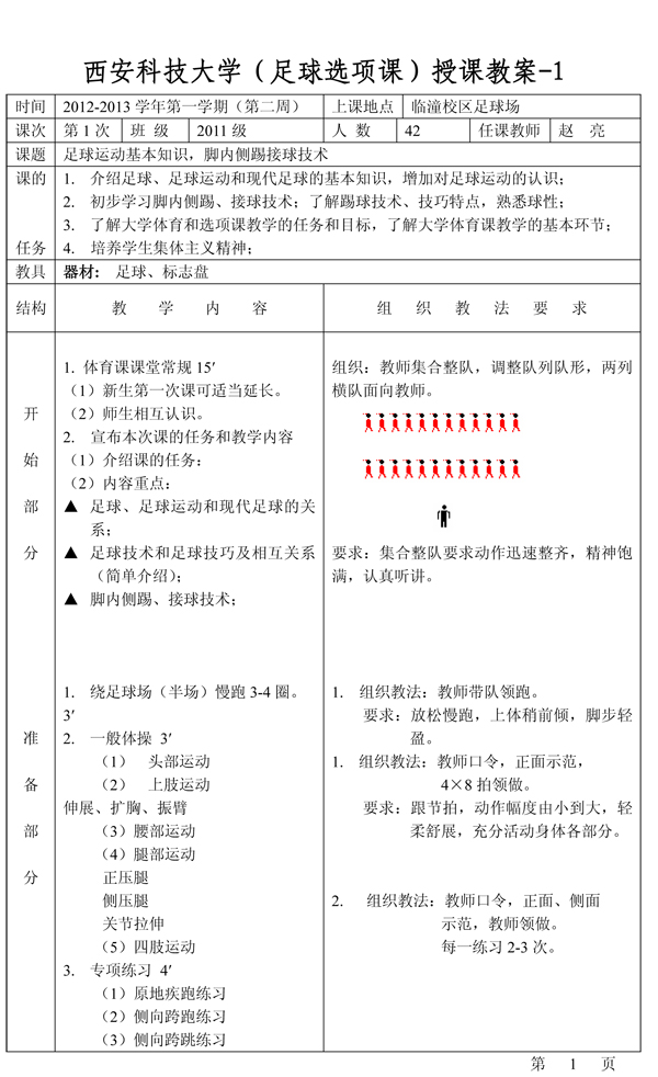 西安科技大學趙亮《足球選項課》教案(選)