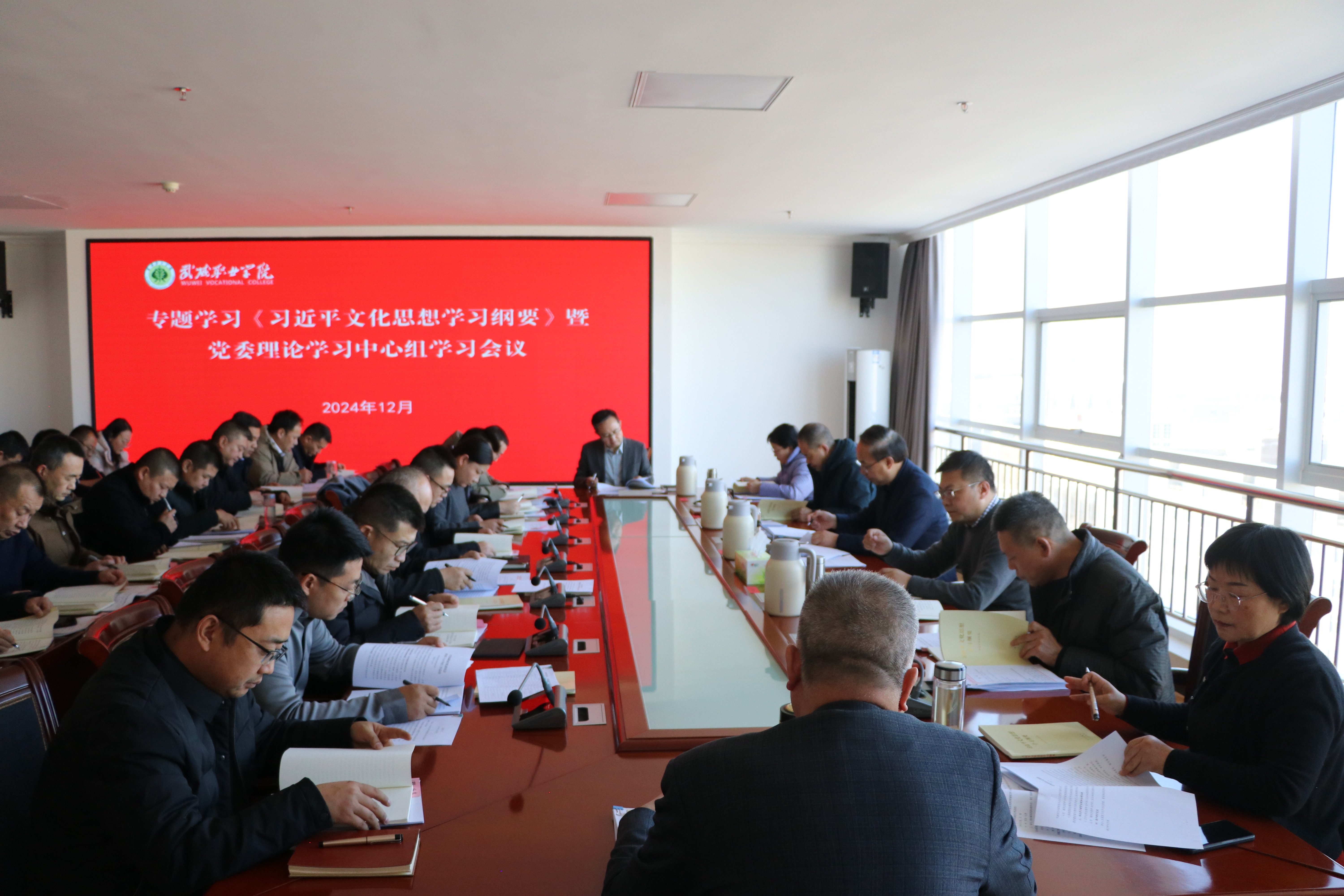 12月20日下午,學(xué)校召開《習(xí)近平文化思想學(xué)習(xí)綱要》專題學(xué)習(xí)暨黨委理論學(xué)習(xí)中心組學(xué)習(xí)會議。學(xué)校領(lǐng)導(dǎo),各部門、二級學(xué)院主要負(fù)責(zé)人,各黨總支與直屬黨支部書記參加會議。黨委書記王宏主持會議并講話。