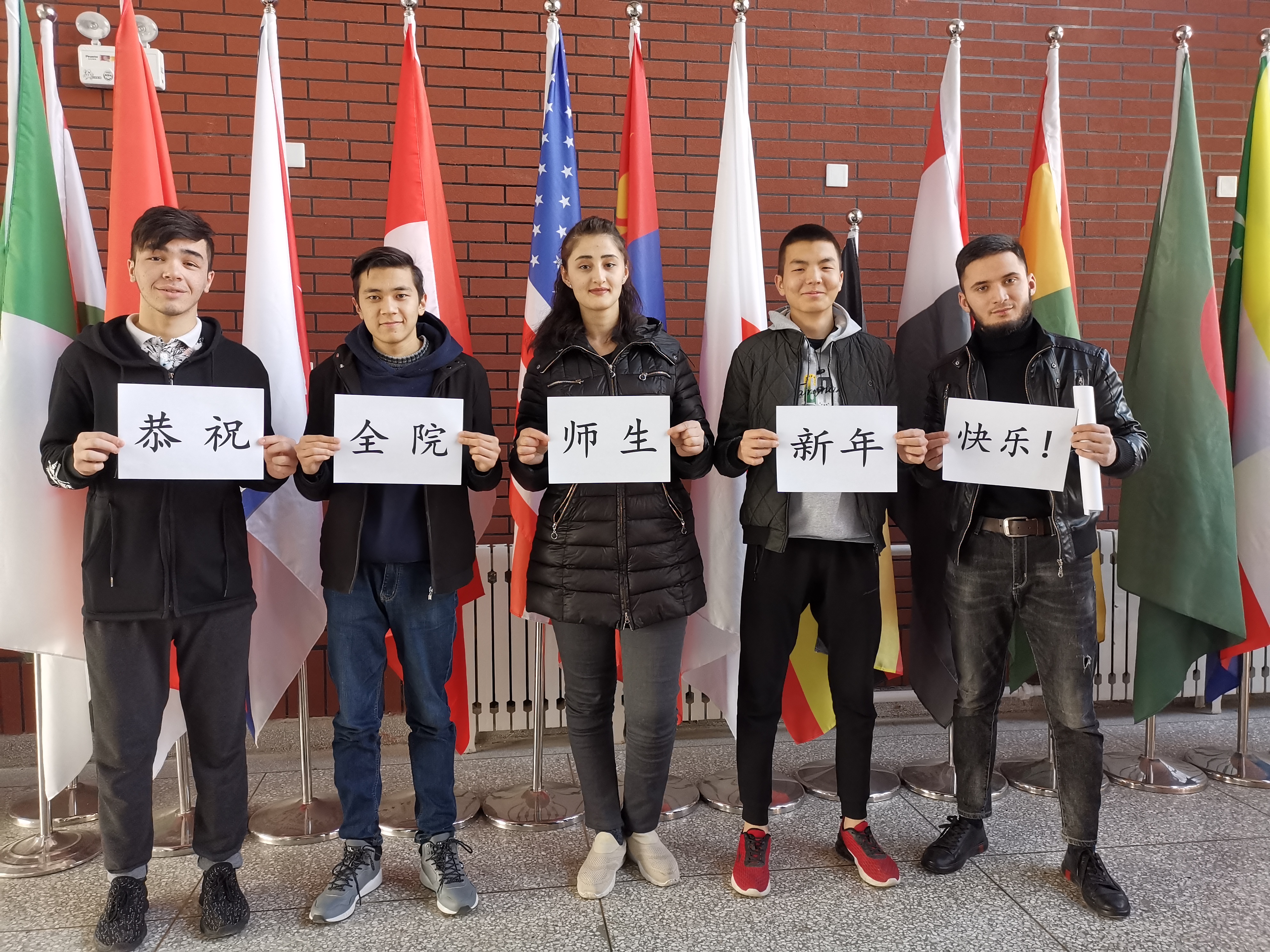 留學(xué)生恭祝全校師生新年快樂