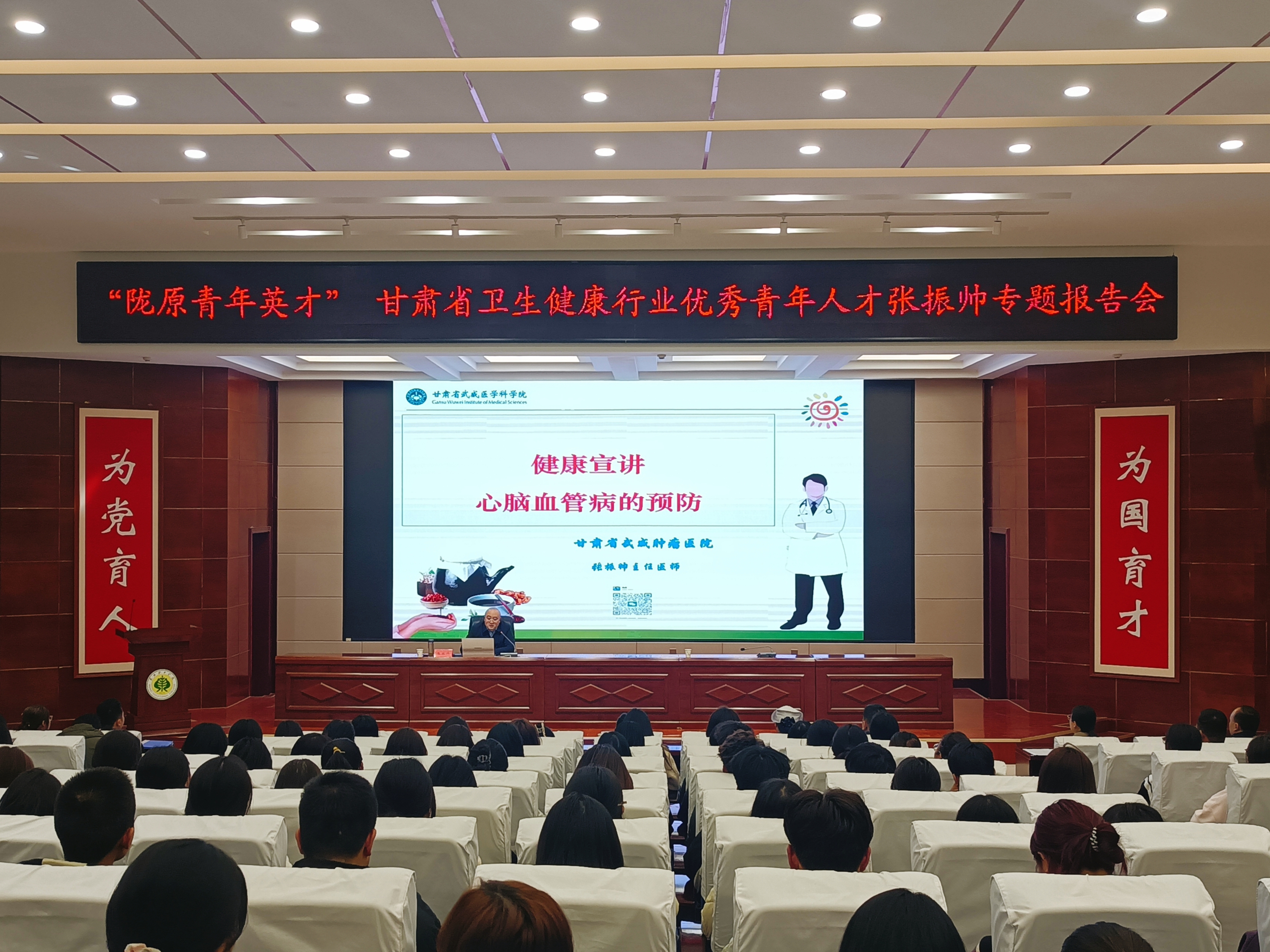 2月27日,學(xué)校邀請(qǐng)甘肅省武威腫瘤醫(yī)院張振帥主任醫(yī)師在學(xué)生發(fā)展中心菁英廳舉辦了中醫(yī)藥經(jīng)典誦讀活動(dòng)與心腦血管疾病預(yù)防知識(shí)講座,護(hù)理學(xué)院學(xué)生團(tuán)支部書(shū)記何玉桃等7名教師及2023級(jí)護(hù)理大專(zhuān)班全體學(xué)生共同參加。