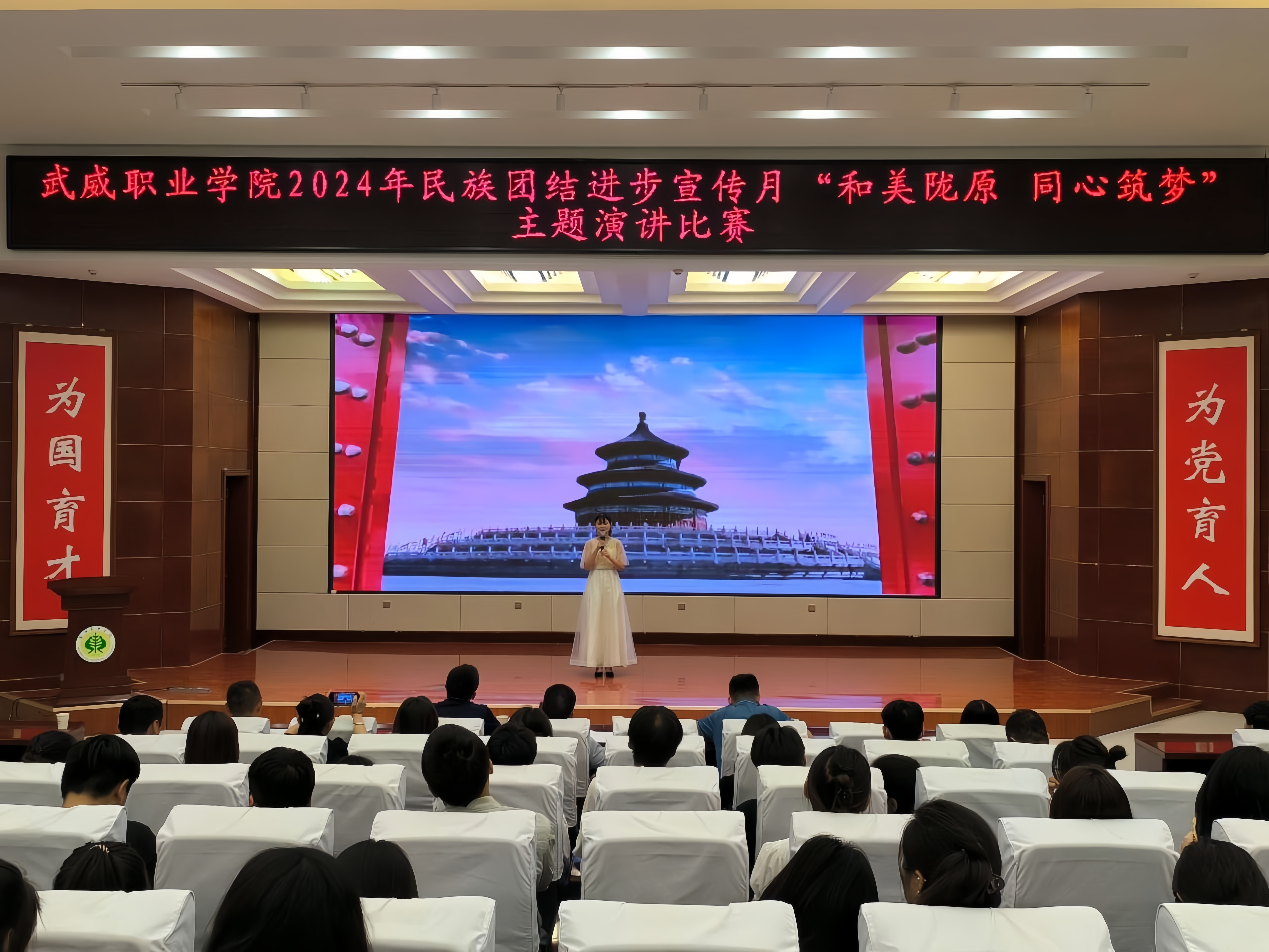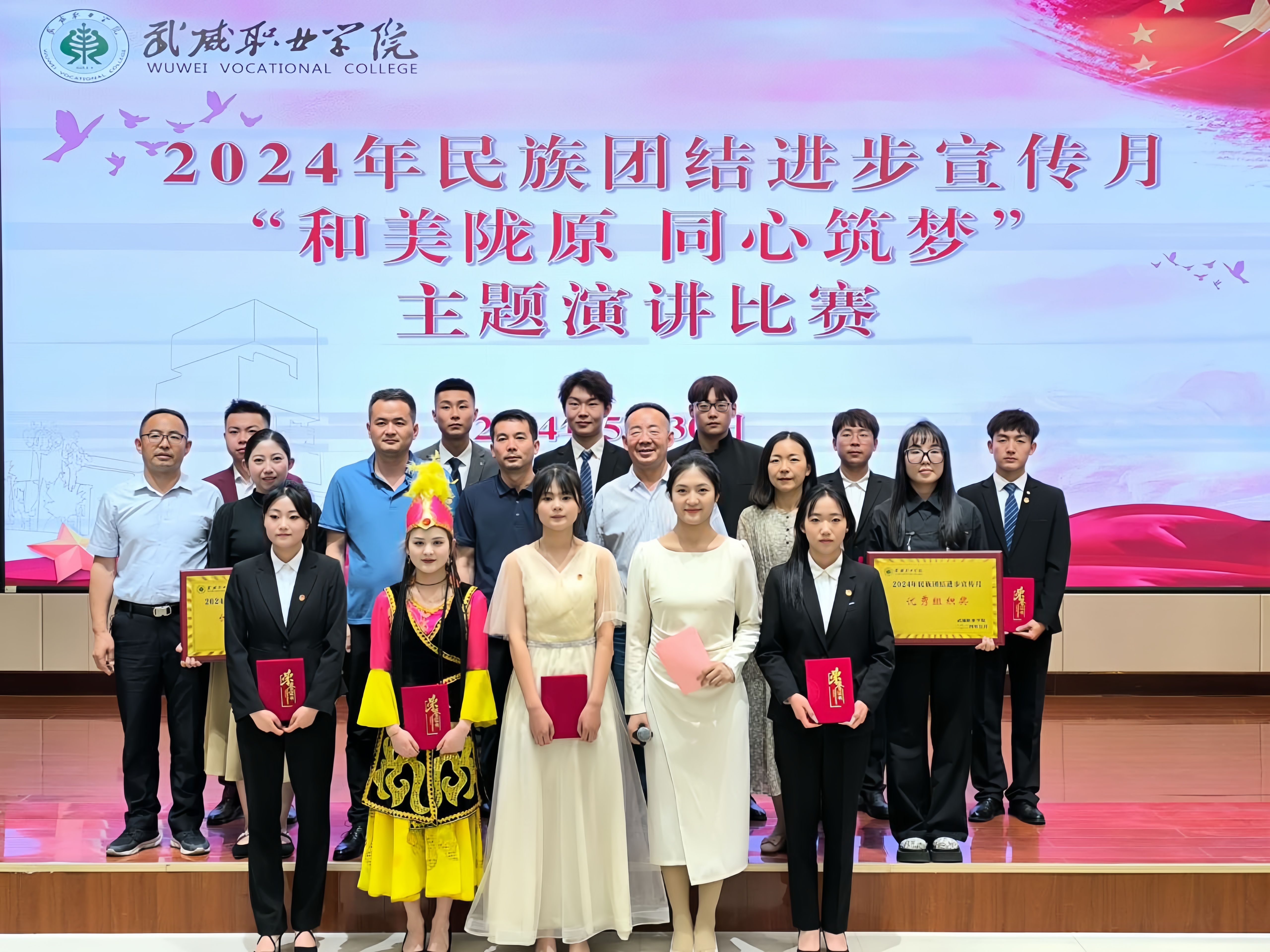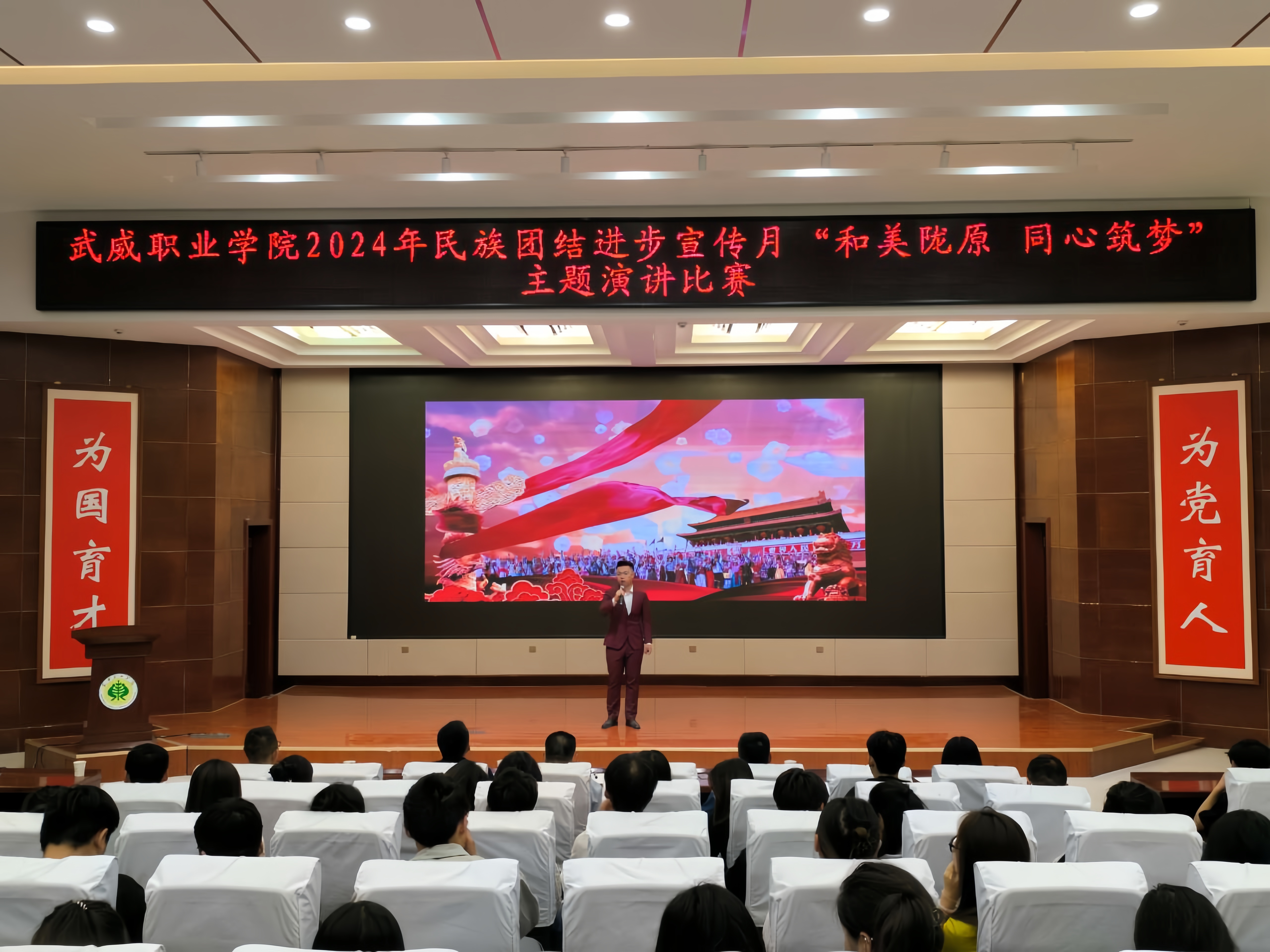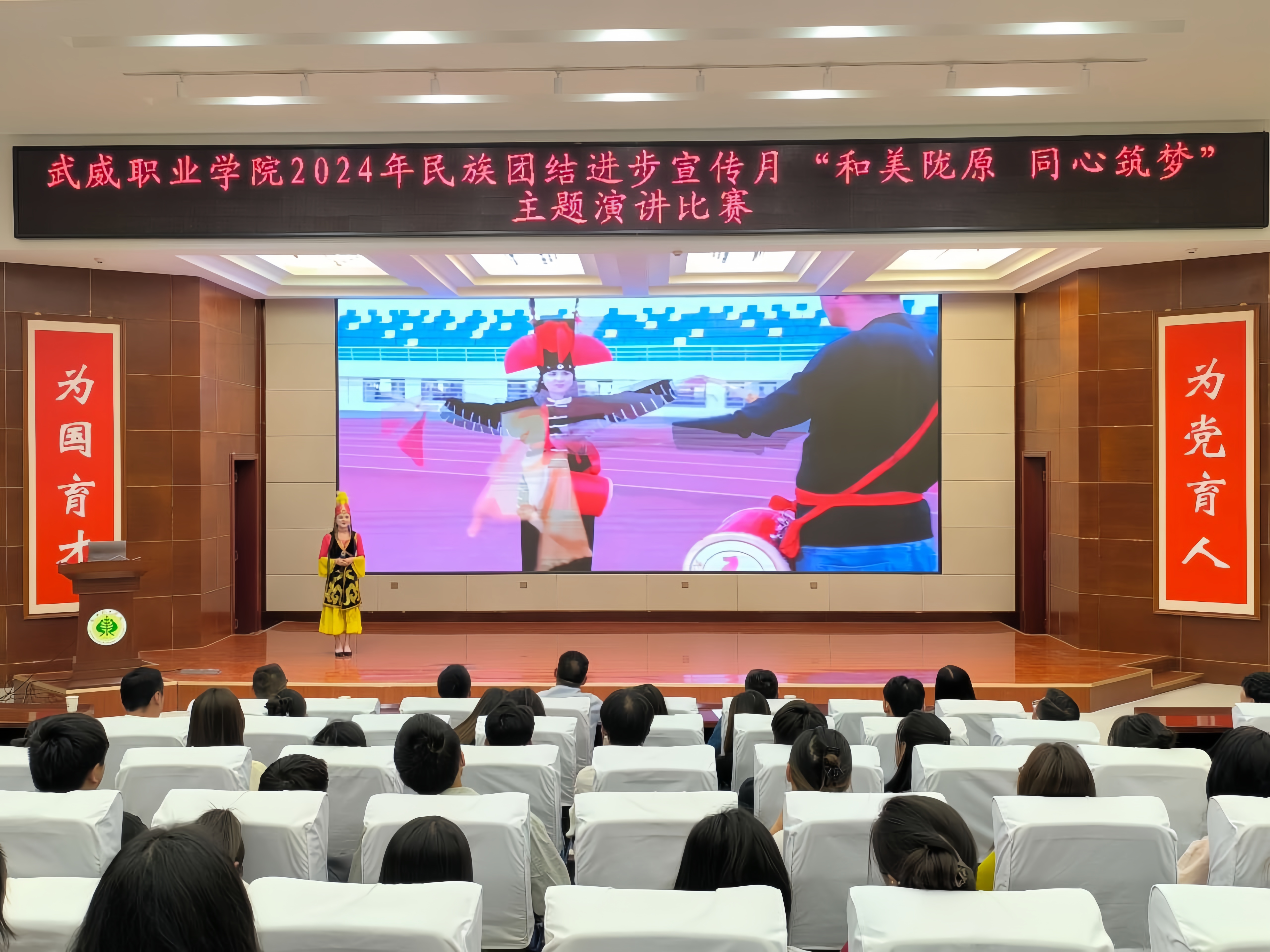 為持續(xù)深化民族團(tuán)結(jié)進(jìn)步教育,進(jìn)一步引導(dǎo)各族師生牢固樹立“四個與共”的共同體理念。學(xué)校于5月30日晚在學(xué)生發(fā)展中心菁英廳舉辦了“和美隴原 同心筑夢”主題演講比賽。200余名師生參加活動。