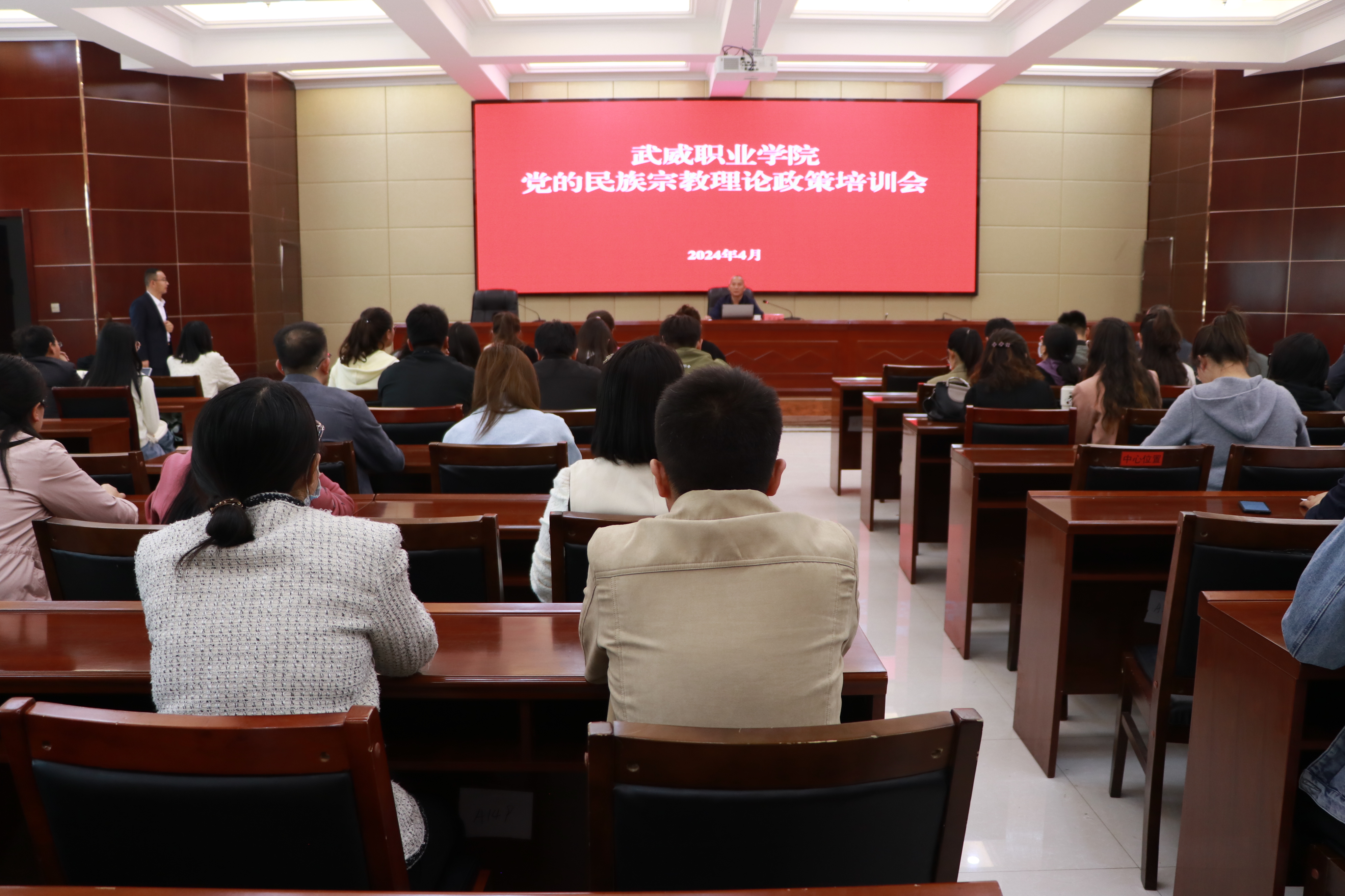 為引導各民族學習宣傳貫徹黨的二十大精神和習近平總書記關于加強和改進民族工作的重要思想,扎實開展第21個民族團結(jié)進步宣傳月活動,推動全校師生全力做好鑄牢中華民族共同體意識宣傳教育、加強民族團結(jié)進步創(chuàng)建,4月26日下午,學校在行樹樓北側(cè)報告廳舉行黨的民族宗教理論政策培訓會。宣傳統(tǒng)戰(zhàn)部全體人員、馬克思主義學院選派的部分思政課教師、各二級學院輔導員、班主任代表等100余人參加培訓會。