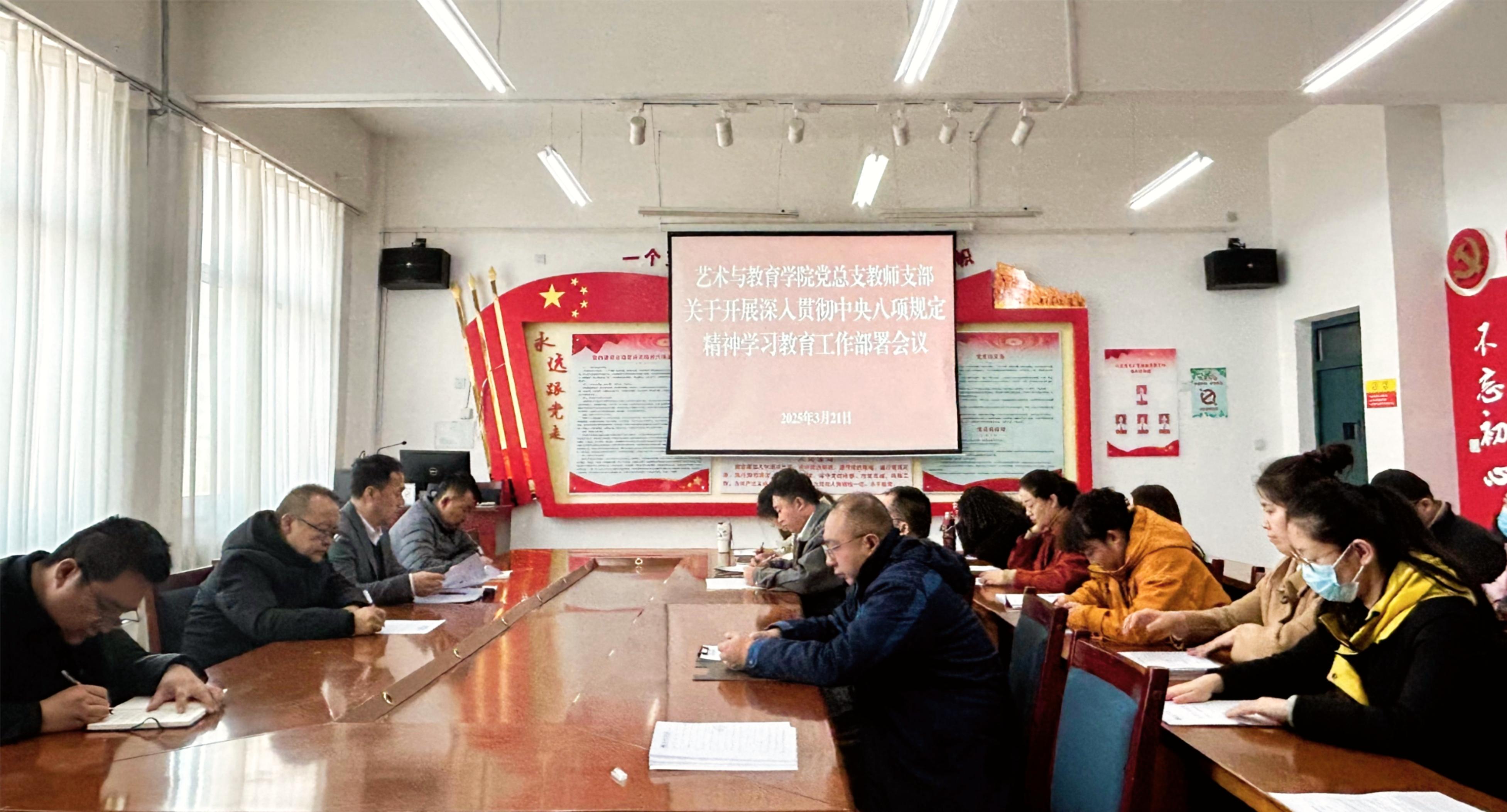 3月21日,學(xué)院召開深入貫徹中央八項(xiàng)規(guī)定精神學(xué)習(xí)教育安排部署會(huì)議,認(rèn)真學(xué)習(xí)貫徹習(xí)近平總書記關(guān)于開展深入貫徹中央八項(xiàng)規(guī)定精神學(xué)習(xí)教育的重要講話和重要指示精神,貫徹落實(shí)中央黨的建設(shè)工作領(lǐng)導(dǎo)小組會(huì)議精神和省委、學(xué)校黨委部署會(huì)議精神,對(duì)學(xué)院開展學(xué)習(xí)教育進(jìn)行全面安排部署。學(xué)院全體黨員參加會(huì)議。