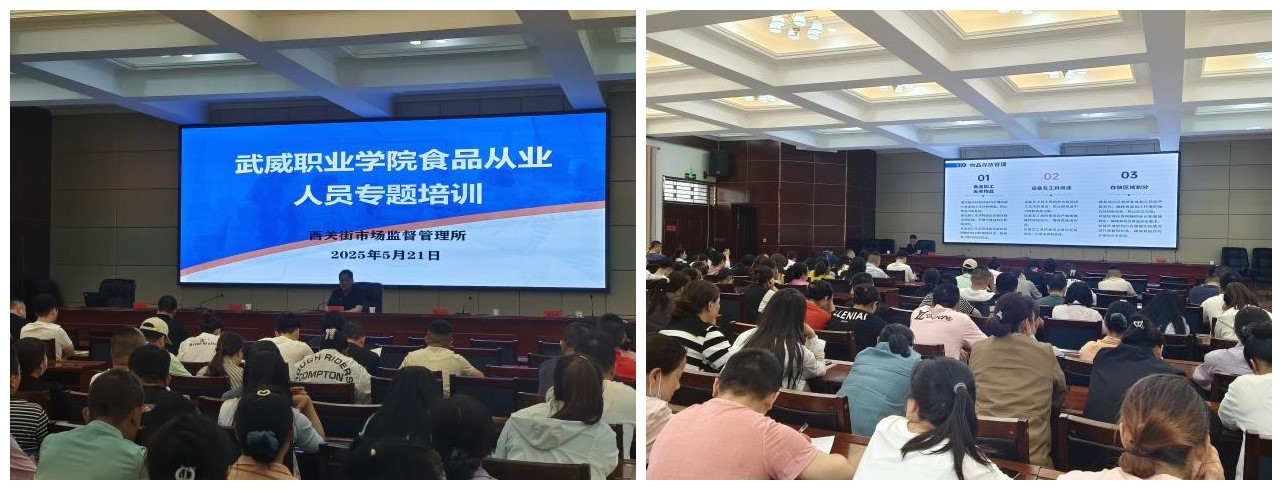 5月21日下午,學(xué)校邀請(qǐng)涼州區(qū)市場監(jiān)管局副局長汪大勇、西關(guān)街市場監(jiān)督管理所所長秦榮華開展食品安全專題培訓(xùn)。學(xué)生食堂、超市、后勤服務(wù)樓管理人員和全體從業(yè)人員200余人參加培訓(xùn)。培訓(xùn)由后勤管理處處長占發(fā)禹主持。