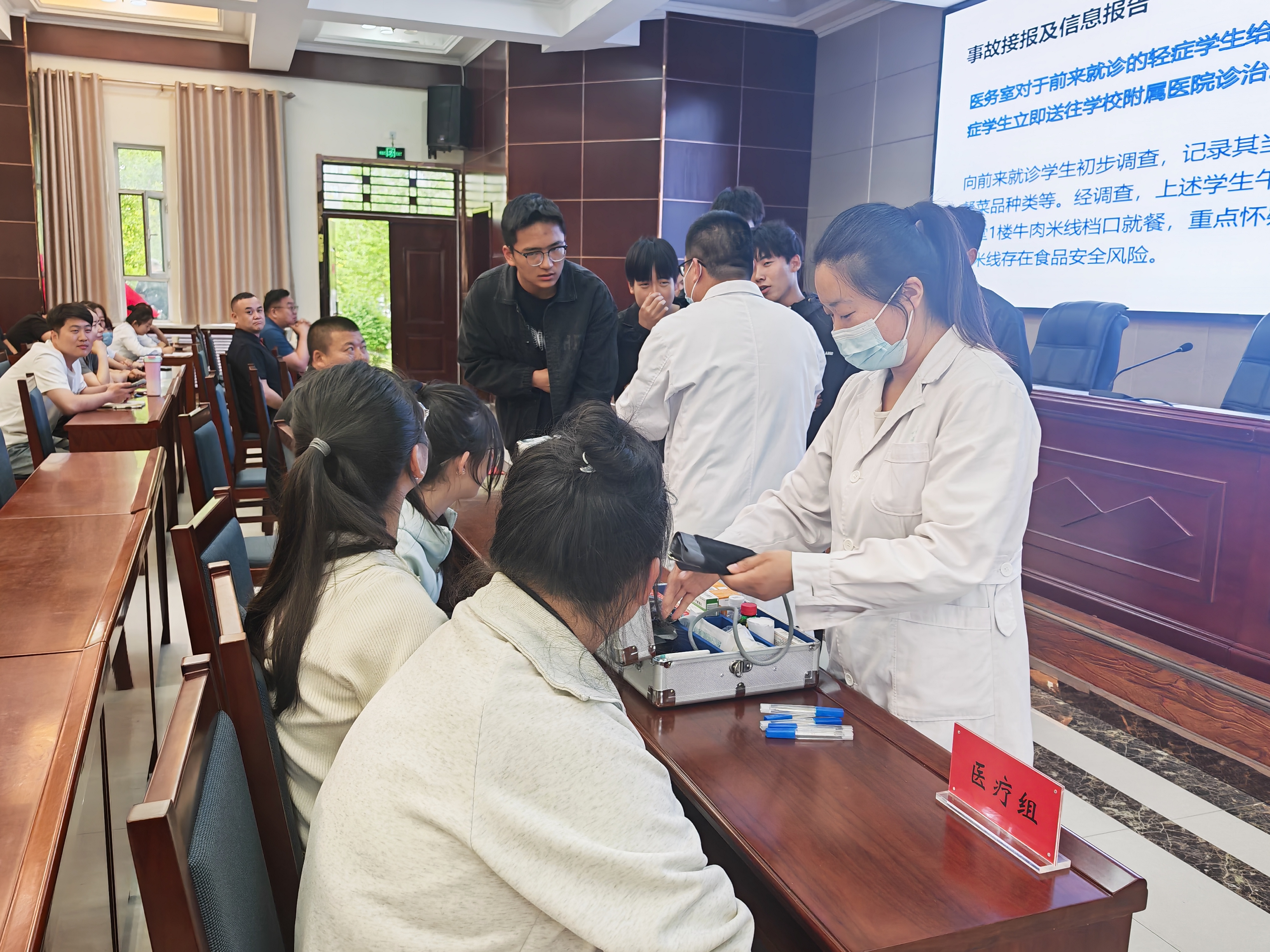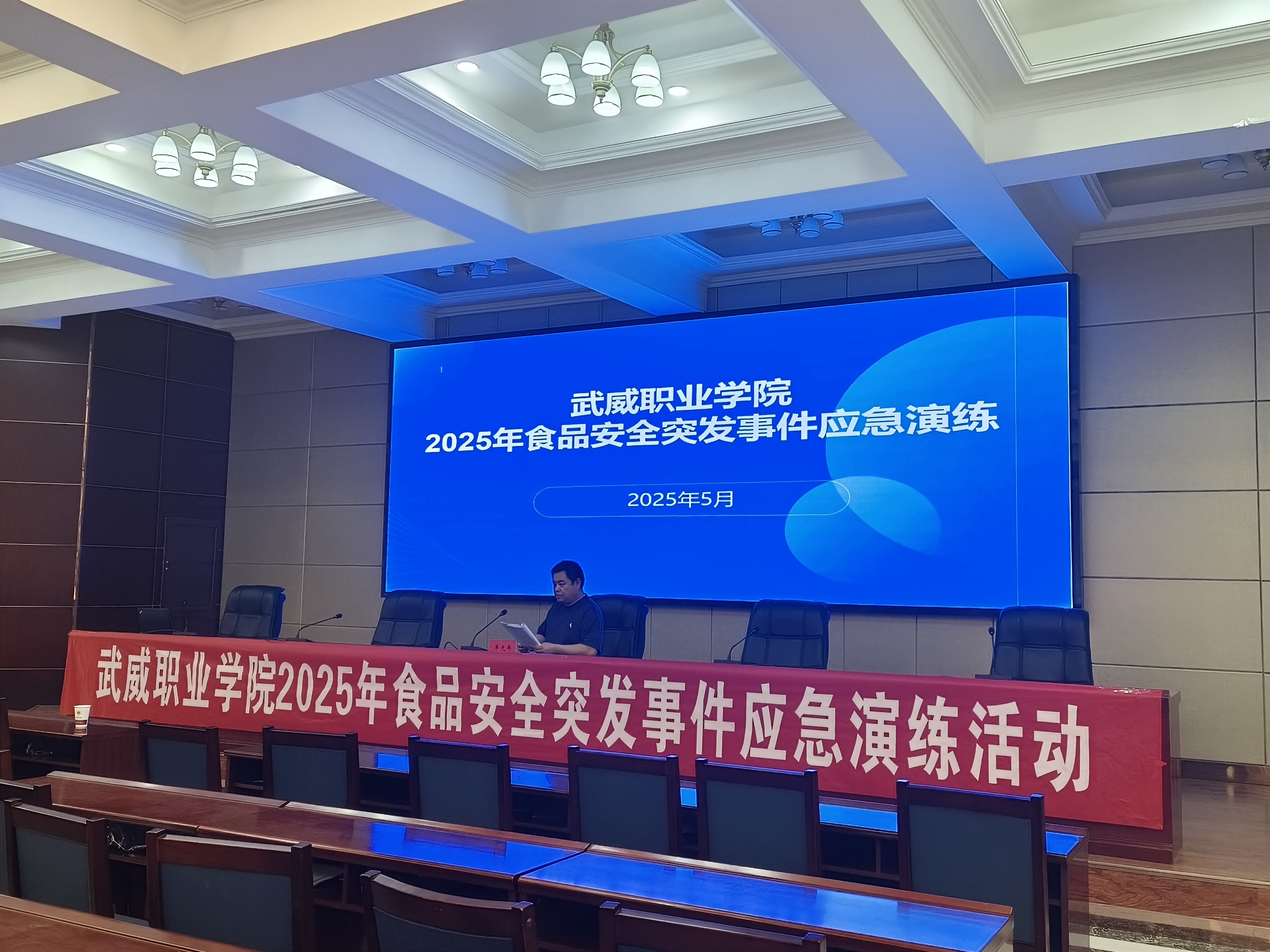 為全面貫徹落實(shí)習(xí)近平總書(shū)記關(guān)于食品安全重要指示批示精神和對(duì)食品安全提出的“四個(gè)最嚴(yán)”要求,不斷加強(qiáng)我校食品安全應(yīng)急管理體系建設(shè),著力提高學(xué)校食品安全突發(fā)事件的快速響應(yīng)、高效處置能力,牢固樹(shù)立“全程防范、全員應(yīng)急”的理念,學(xué)校于5月21日下午在行樹(shù)樓北側(cè)報(bào)告廳舉辦2025年食品安全突發(fā)事件應(yīng)急演練。學(xué)校食品安全總監(jiān)、辦公室、宣傳統(tǒng)戰(zhàn)部、學(xué)生工作部、后勤管理處、校醫(yī)室、各二級(jí)學(xué)院輔導(dǎo)員代表和學(xué)生食堂、超市、后勤服務(wù)樓全體從業(yè)人員200余人參加演練。