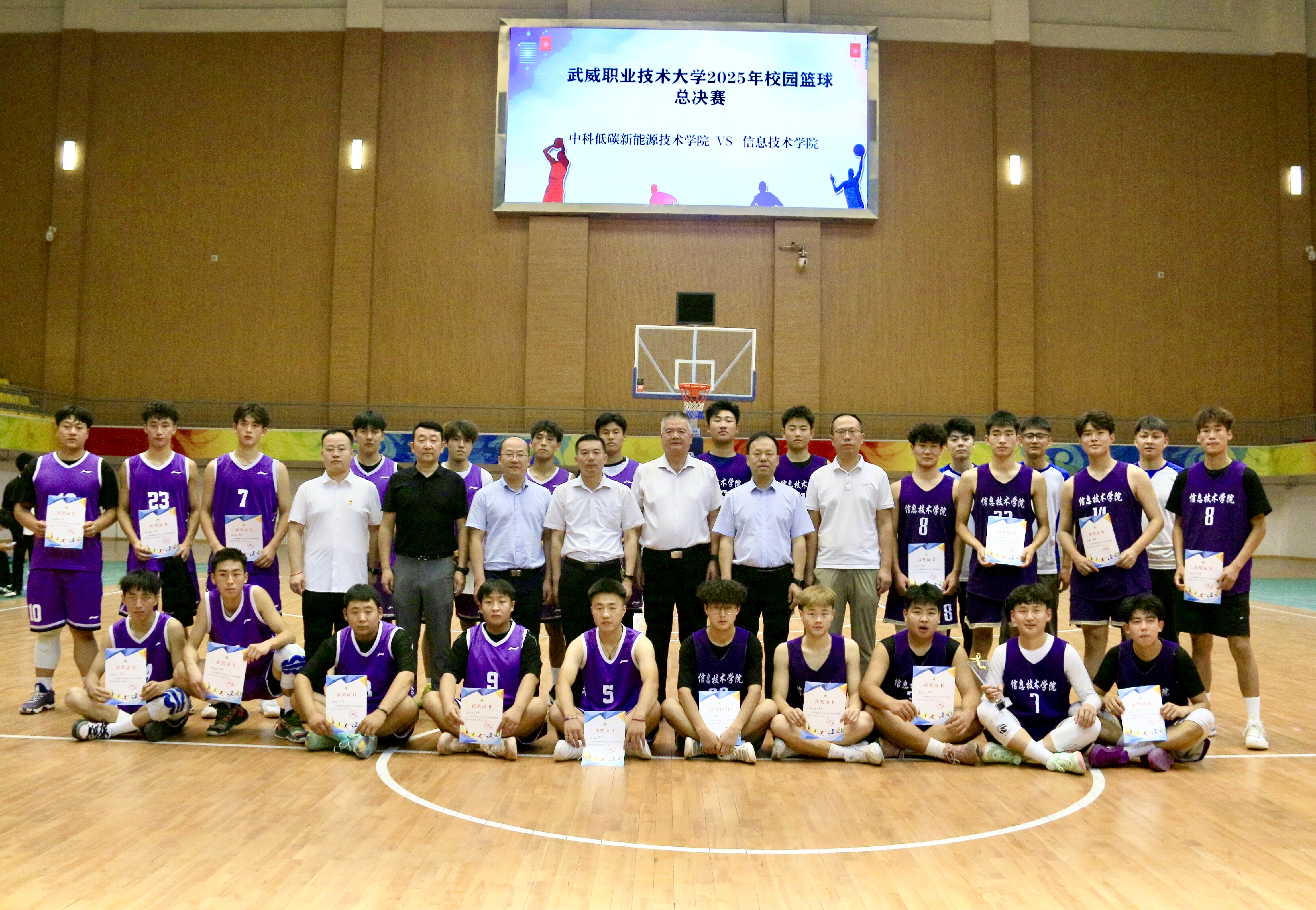 6月26日下午,由學校體育運動委員會主辦,藝術與教育學院承辦的2025年校園籃球比賽男子組決賽在體育館舉行。經(jīng)過激烈比拼,信息技術學院代表隊以42:39戰(zhàn)勝中科低碳新能源學院代表隊,獲得本次籃球比賽男子組冠軍。學校黨委委員、副校長王守云到場觀看比賽并為獲獎代表隊頒獎。