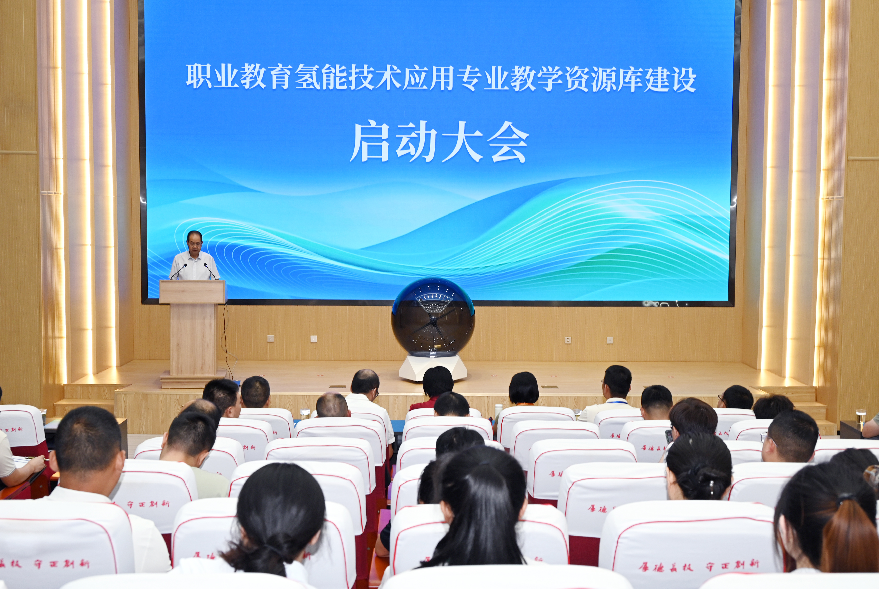 在參會領(lǐng)導(dǎo)和嘉賓的共同見證下,舉行了職業(yè)教育氫能技術(shù)應(yīng)用專業(yè)教學(xué)資源庫建設(shè)啟動儀式。隨著啟動球的點亮,標(biāo)志著資源庫建設(shè)正式啟動。