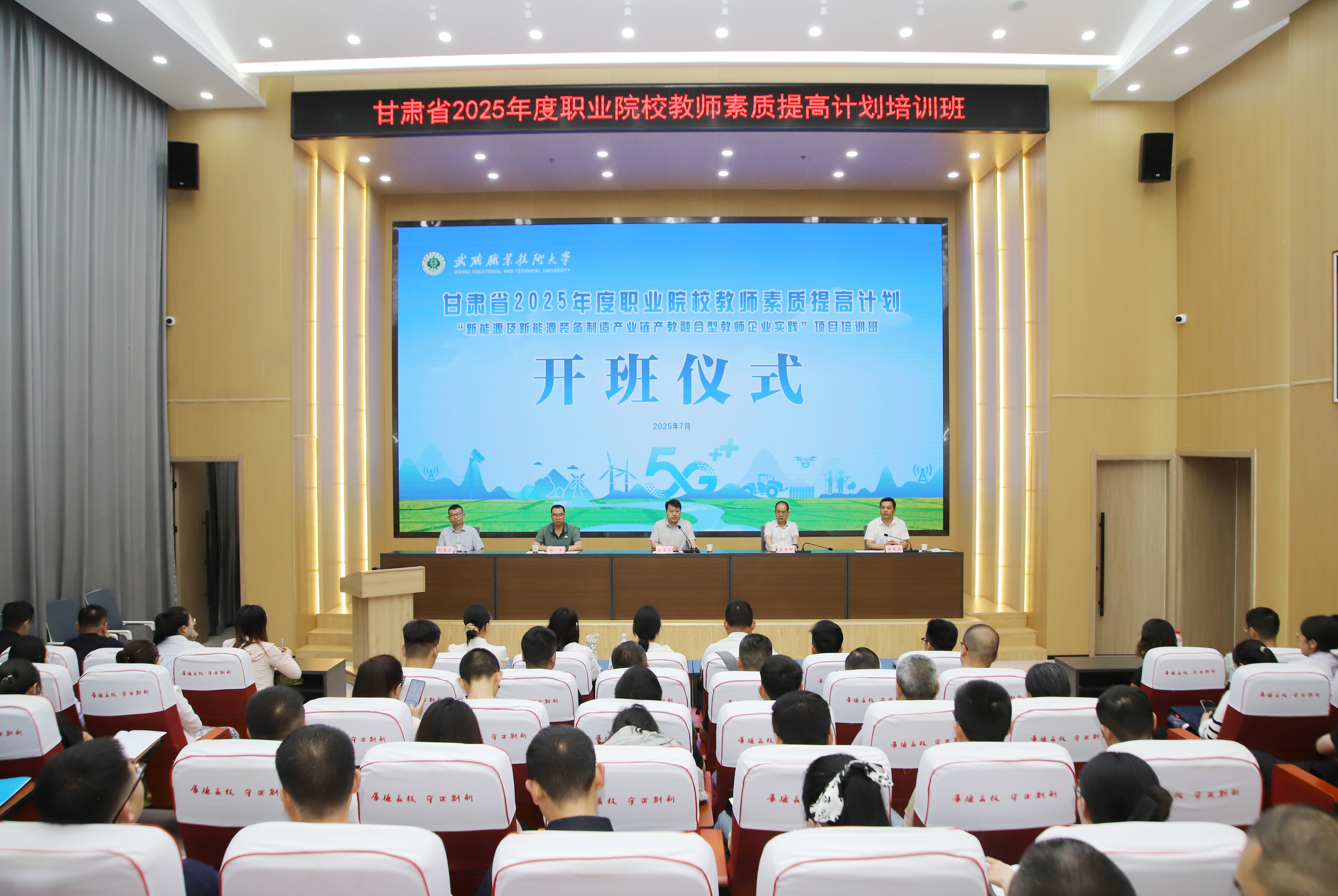 7月21日,由甘肅省教育廳主辦,武威職業(yè)技術(shù)大學(xué)首次承辦的甘肅省2025年度職業(yè)院校教師素質(zhì)提高計(jì)劃“新能源及新能源裝備制造產(chǎn)業(yè)鏈產(chǎn)教融合型教師企業(yè)實(shí)踐”項(xiàng)目培訓(xùn)班在學(xué)校順利開班,培訓(xùn)旨在提升教師產(chǎn)教融合、實(shí)踐教學(xué)、技術(shù)創(chuàng)新與服務(wù)的意識(shí)和能力,為甘肅省職業(yè)院校新時(shí)代高素質(zhì)專業(yè)化教師隊(duì)伍建設(shè)提供有力支撐。黨委副書記翟存祥,甘肅省職業(yè)院校教師素質(zhì)提高計(jì)劃管理辦公室負(fù)責(zé)人及專家出席開班儀式,來自全省16所職業(yè)技術(shù)大學(xué)(學(xué)院)的120名骨干教師參加培訓(xùn)。中科低碳新能源技術(shù)學(xué)院院長黃述杰主持開班儀式。