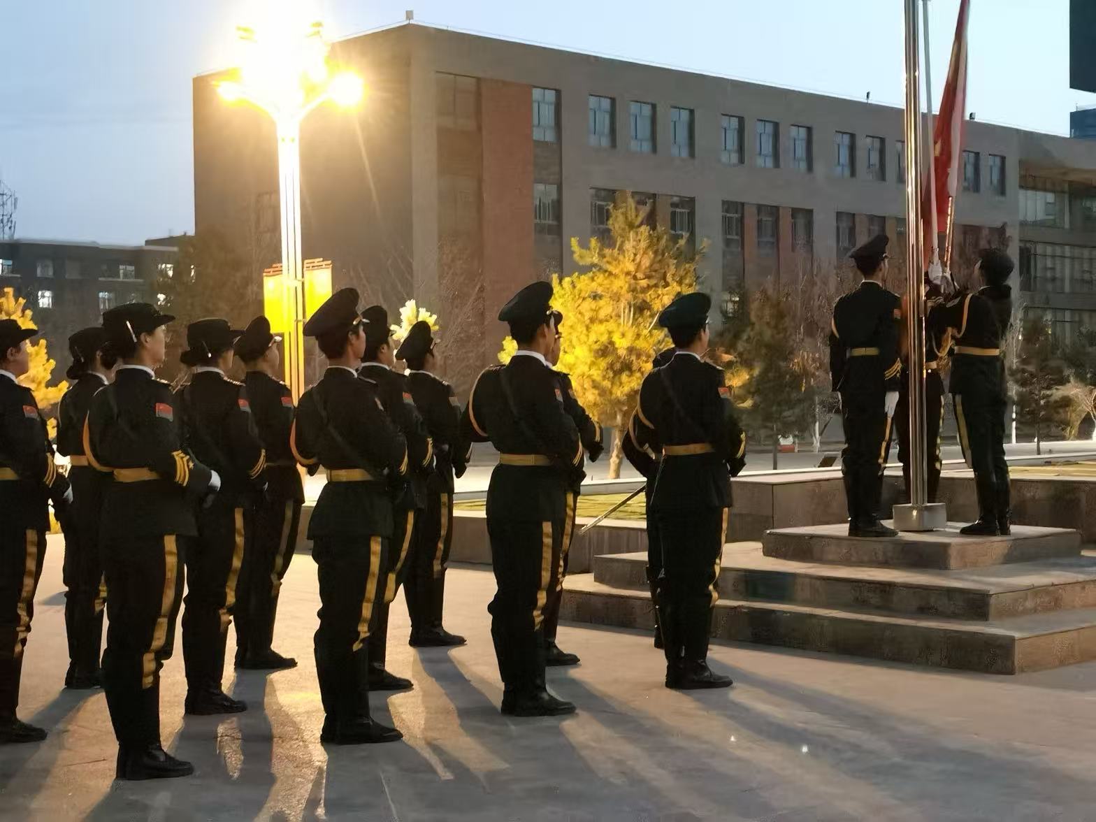 全體學生整齊列隊,伴隨著莊嚴的國歌,注視著國旗護衛(wèi)隊護送五星紅旗冉冉升起,展現(xiàn)了學院學子昂揚向上的精神風貌。