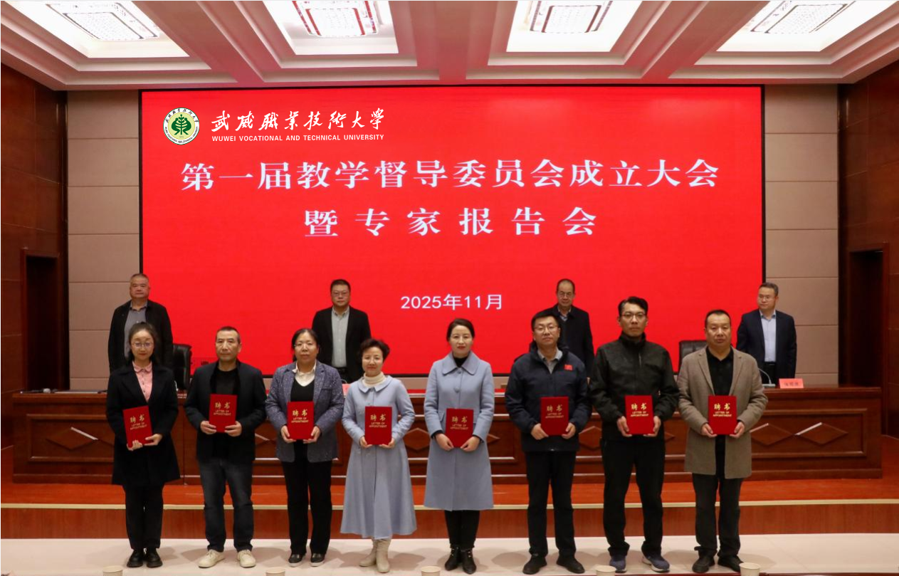 會(huì)上,翟存祥宣讀了《關(guān)于成立武威職業(yè)技術(shù)大學(xué)教學(xué)督導(dǎo)委員會(huì)的通知》,校領(lǐng)導(dǎo)為督導(dǎo)委員會(huì)成員代表頒發(fā)聘書(shū)。