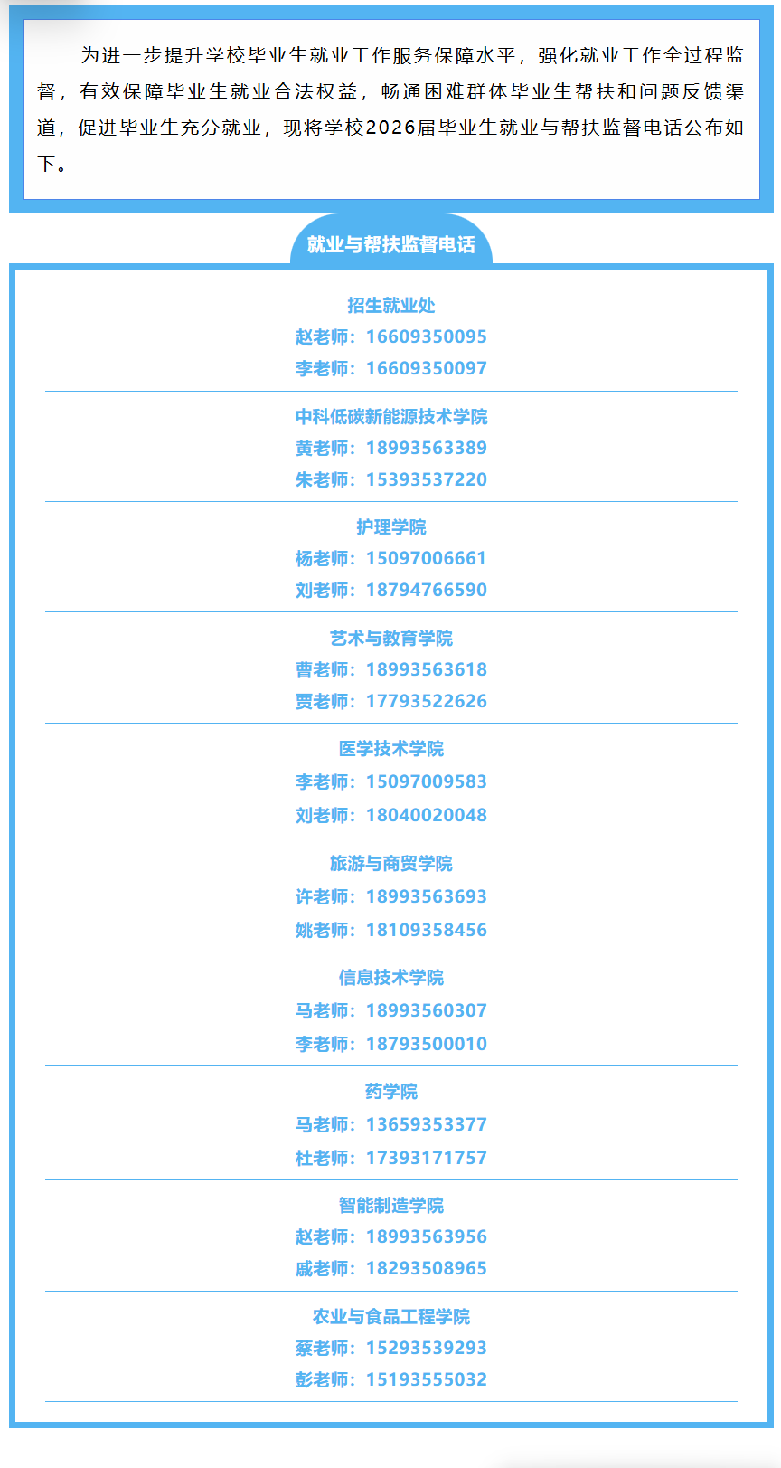 武威職業(yè)技術(shù)大學(xué)2026屆畢業(yè)生就業(yè)與幫扶監(jiān)督電話