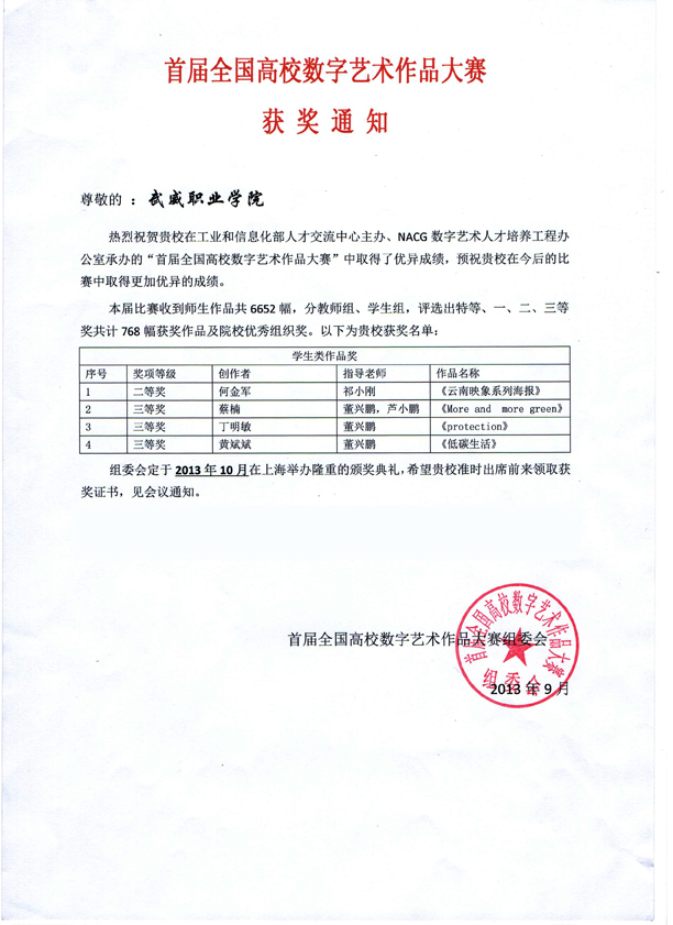 我院學(xué)生在全國高校數(shù)字藝術(shù)作品大賽中獲獎
