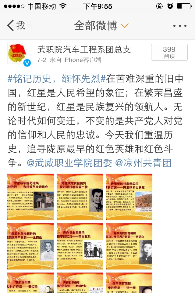 新媒體是對(duì)團(tuán)員青年進(jìn)行宣傳教育的一塊重要的輿論陣地,汽車工程系團(tuán)總支通過(guò)青媒中心設(shè)立的微信公眾平臺(tái)、新浪微博、QQ空間等多種手段,通過(guò)發(fā)布中國(guó)人民抗戰(zhàn)歷史知識(shí)、設(shè)立紀(jì)念抗日戰(zhàn)爭(zhēng)70周年話題等多種形式,以圖文并茂的方式給團(tuán)員青年進(jìn)行了一次中國(guó)人民抗戰(zhàn)大普及和大討論,使團(tuán)員青年在學(xué)習(xí)知識(shí)和討論觀點(diǎn)中,堅(jiān)定理想信念,培養(yǎng)愛國(guó)情操、樹立歷史使命、珍惜美好生活、勿忘國(guó)恥,展望未來(lái)。
