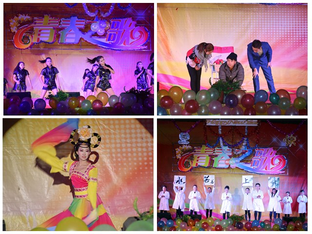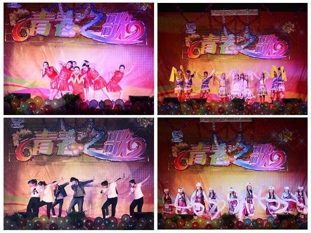本次晚會(huì)以“青春之歌,歡送畢業(yè)生”為主題,共表演了17個(gè)精彩節(jié)目。晚上7點(diǎn)整,開場舞《倍兒爽》、《小蘋果》為整臺(tái)晚會(huì)拉開了帷幕。在晚會(huì)上,《格桑拉》、《吉祥謠》及《青春踢踏》等少數(shù)民族舞蹈,體現(xiàn)了五十六個(gè)民族大團(tuán)結(jié),互相共融的感情;《感恩的心》表達(dá)了學(xué)生們對(duì)老師一年來孜孜不倦、淳淳教誨的感恩之情;《天下父母心》表達(dá)了對(duì)父母的養(yǎng)育之恩的感謝;舞蹈《驚鴻舞》和《The boys》等給觀眾帶來了別樣的風(fēng)情,展現(xiàn)出青年學(xué)子活力青春;大型舞蹈《致那些年逝去的青春》和《夢回敦煌》帶給觀眾視覺盛宴;舞蹈《串燒》結(jié)合了幾首近幾年流行的膾炙人口的歌曲,將不同舞蹈串燒一起。青春現(xiàn)代舞《Expect》將整個(gè)晚會(huì)推向高潮。
