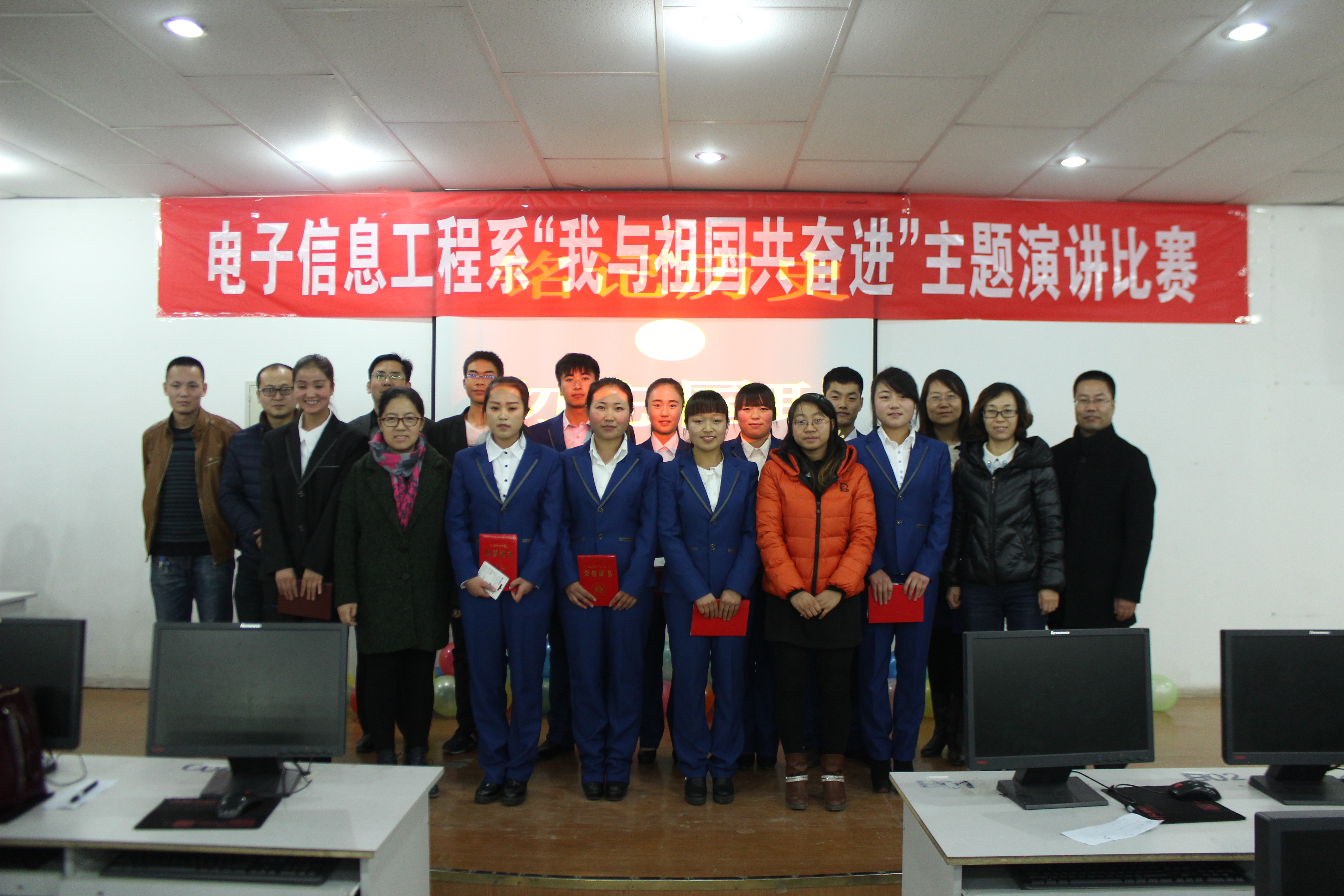 為紀(jì)念“12·9”學(xué)生愛國(guó)運(yùn)動(dòng)80周年,激發(fā)我系青年學(xué)生的愛國(guó)熱情和報(bào)國(guó)之志,進(jìn)一步培育和踐行社會(huì)主義核心價(jià)值觀,提高學(xué)生思想政治素質(zhì),12月6日晚,電子信息工程系在尚德樓11號(hào)機(jī)房舉辦了“我與祖國(guó)共奮進(jìn)”主題演講比賽。電子信息工程系黨總支書記張伯成、輔導(dǎo)員鄧偉華、團(tuán)總支書記唐宗舜、全體班主任及系團(tuán)總支180多名團(tuán)員青年觀看了比賽。