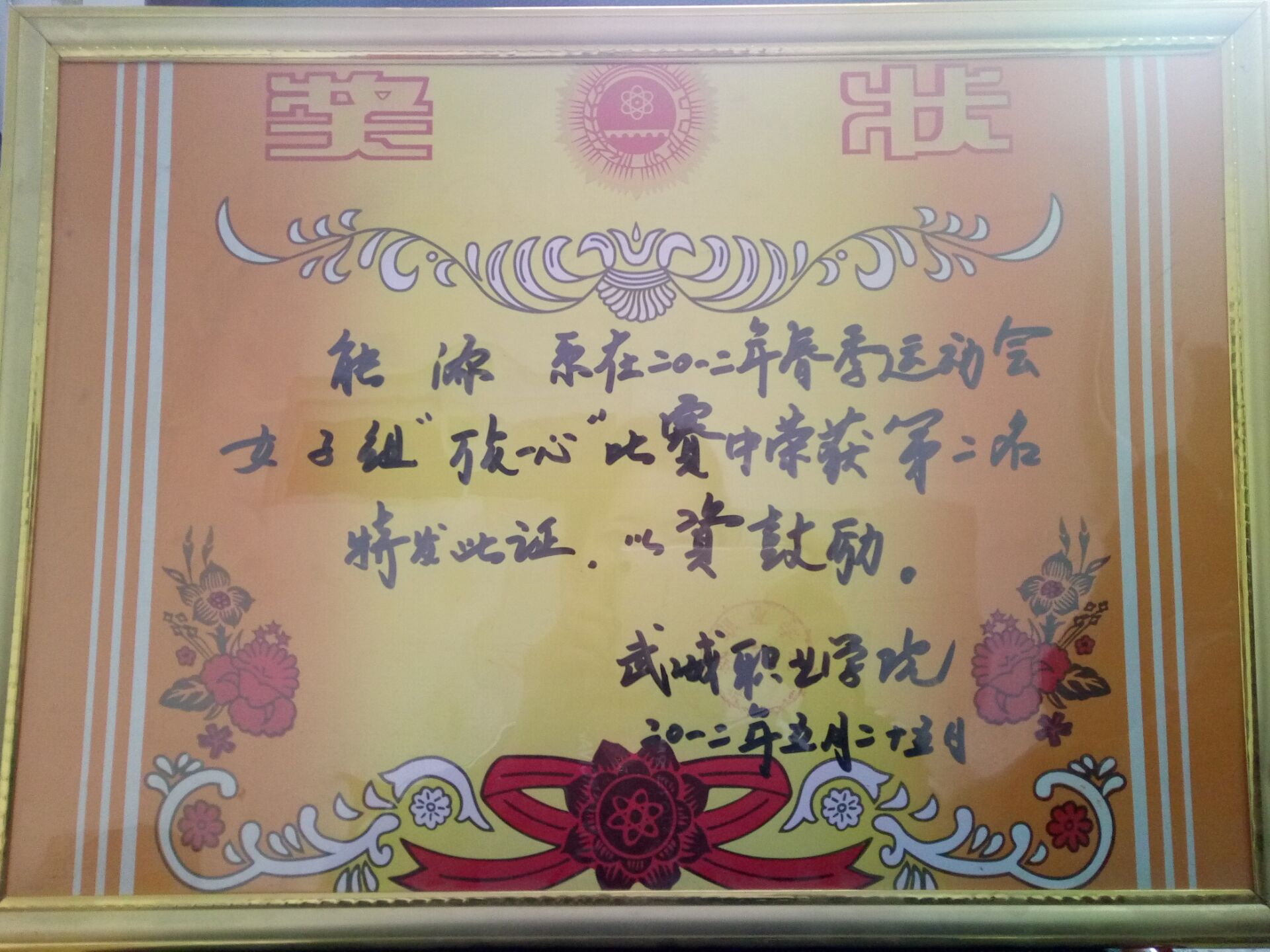 我系代表隊(duì)在2012年春季運(yùn)動(dòng)會(huì)“團(tuán)結(jié)一心”比賽榮獲第二名