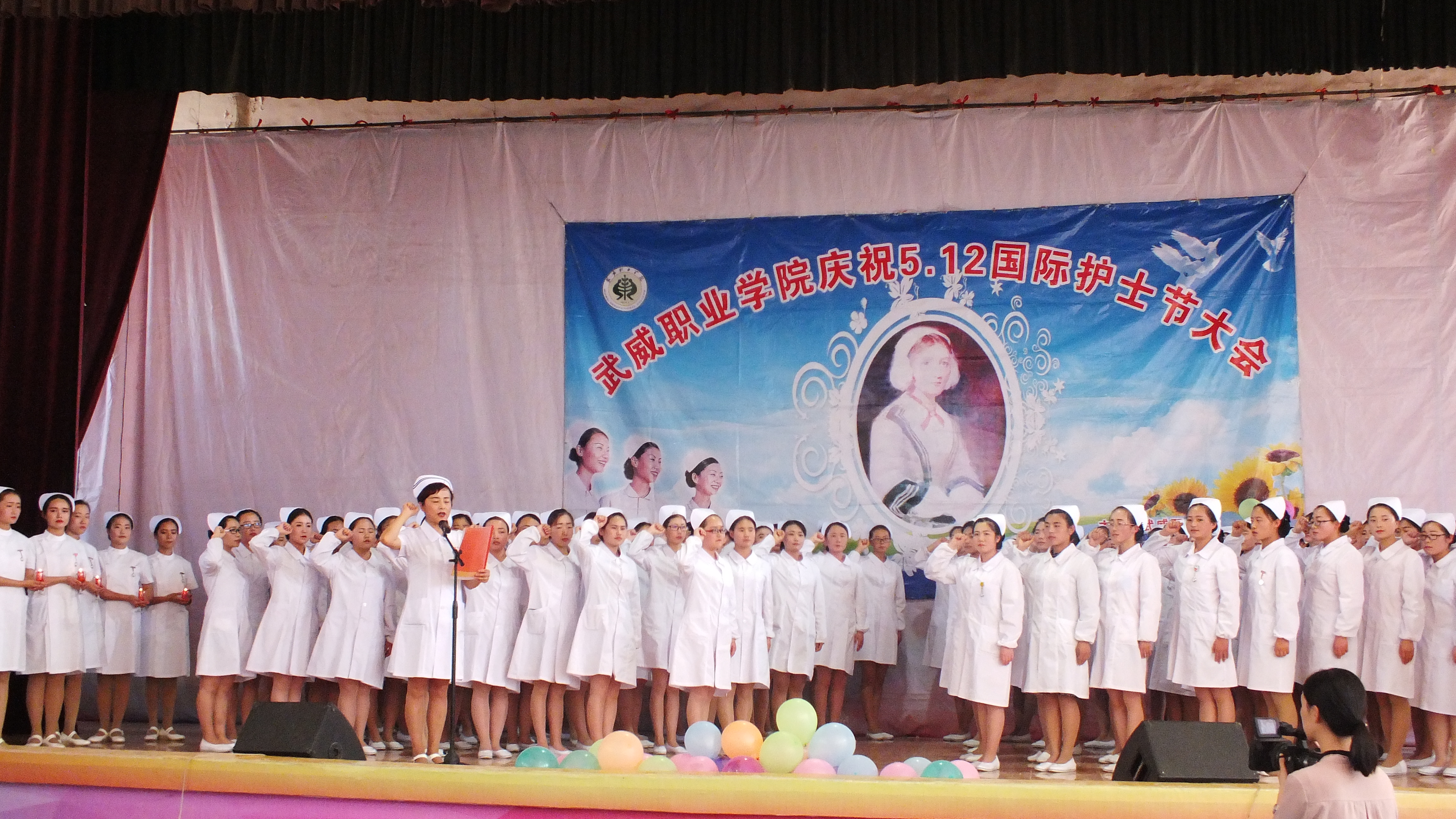 為繼承和弘揚(yáng)南丁格爾精神,積極推動(dòng)護(hù)理專(zhuān)業(yè)人才建設(shè)和職業(yè)內(nèi)涵塑造,展示我院護(hù)理專(zhuān)業(yè)師生風(fēng)采,在第106個(gè)國(guó)際護(hù)士節(jié)來(lái)臨之際,學(xué)院于5月12日下午在大禮堂隆重舉辦了慶祝國(guó)際護(hù)士節(jié)活動(dòng),武威市衛(wèi)生計(jì)生委副主任潘玉華、學(xué)院黨委副書(shū)記趙明、紀(jì)委書(shū)記張富國(guó)、副院長(zhǎng)王永緒、直屬附屬醫(yī)院護(hù)理部主任、相關(guān)處室領(lǐng)導(dǎo)及護(hù)理系全體師生1200余人參與了本次活動(dòng)?;顒?dòng)包括護(hù)士授帽儀式,護(hù)理實(shí)踐技能操作表演,第四屆護(hù)理技能大賽頒獎(jiǎng),慶祝“5.12”護(hù)士節(jié)文藝演出等內(nèi)容。
