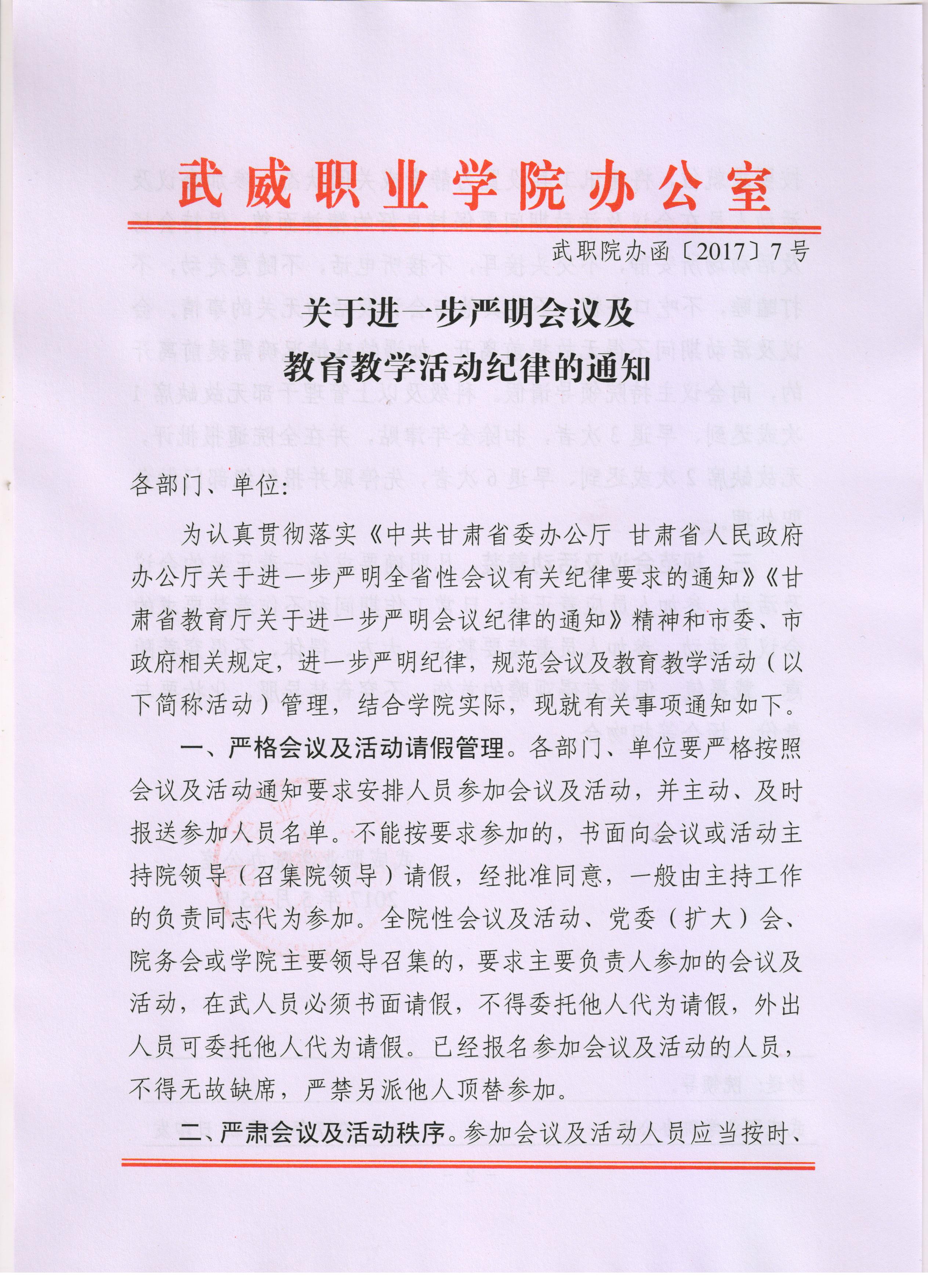 關(guān)于進一步嚴明會議及教育教學(xué)活動紀律的通知