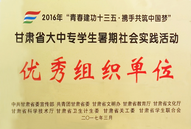 學院團委被省委宣傳部、團省委、省教育廳等九個部門評為2016年甘肅省大中專學生暑期社會實踐活動“優(yōu)秀組織單位”,五個實踐團隊被評為省級“優(yōu)秀團隊”,五名同志被評為“先進個人”,五名教師被評為 “優(yōu)秀指導教師”。