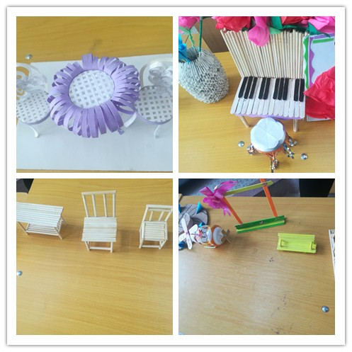 活動中,指導(dǎo)老師要求學(xué)生們充分利用身邊廢棄的飲料瓶、廢紙、塑料、布料、木料等廢舊材料,通過自己的創(chuàng)意,制作出體現(xiàn)科技、環(huán)保的工藝作品。活動布置后,同學(xué)們積極參與,充分利用網(wǎng)絡(luò)搜集相關(guān)資料及設(shè)計(jì)圖案,憑借豐富的想象力和創(chuàng)造力,將生活中的廢品制作成了各種各樣的手工藝術(shù)品。