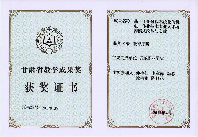 甘肅省教學(xué)成果獎(jiǎng)-基于工作過程系統(tǒng)化的機(jī)電一體化技術(shù)專業(yè)人才培養(yǎng)模式改革與實(shí)踐