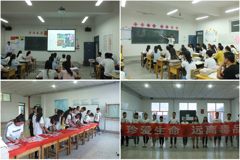 6月26日晚,全系各班利用晚自習(xí)時間召開了“無毒青春,健康生活”的主題班會活動,班主任們結(jié)合圖片資料向同學(xué)們詳細(xì)揭示了毒品的性質(zhì)、種類、特征等知識,同時結(jié)合收集到的吸毒案例,深入淺出地給學(xué)生論述和分析了毒品的危害,以血的教訓(xùn)、鐵的事實告誡大家認(rèn)清危害,樹立自我保護(hù)意識。