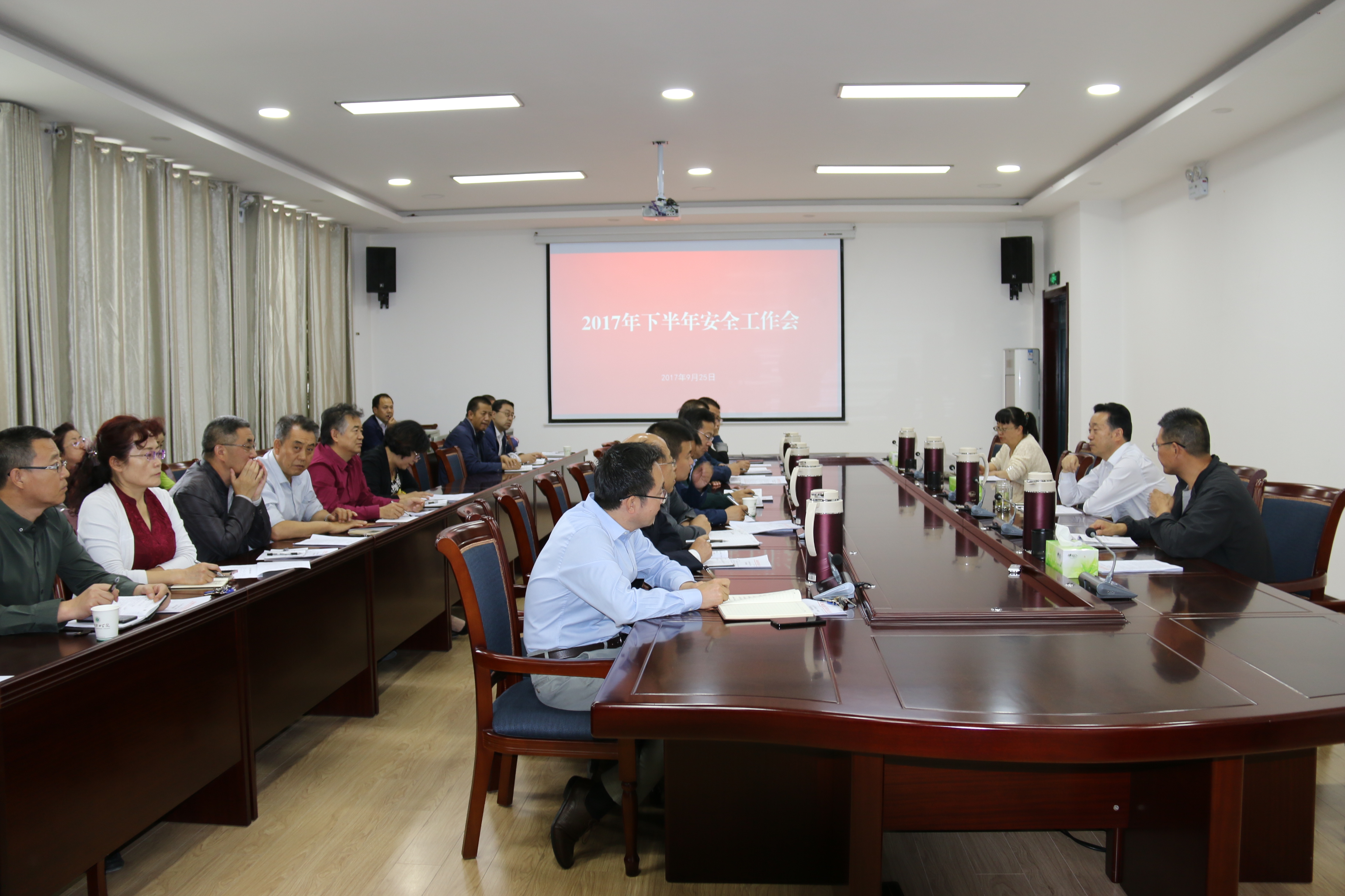 9月25日下午,學(xué)院召開2017年下半年安全工作會議,院長宗瑞謙,副院長王永緒、田迎春出席會議,學(xué)院各部門、單位負(fù)責(zé)同志參加會議。