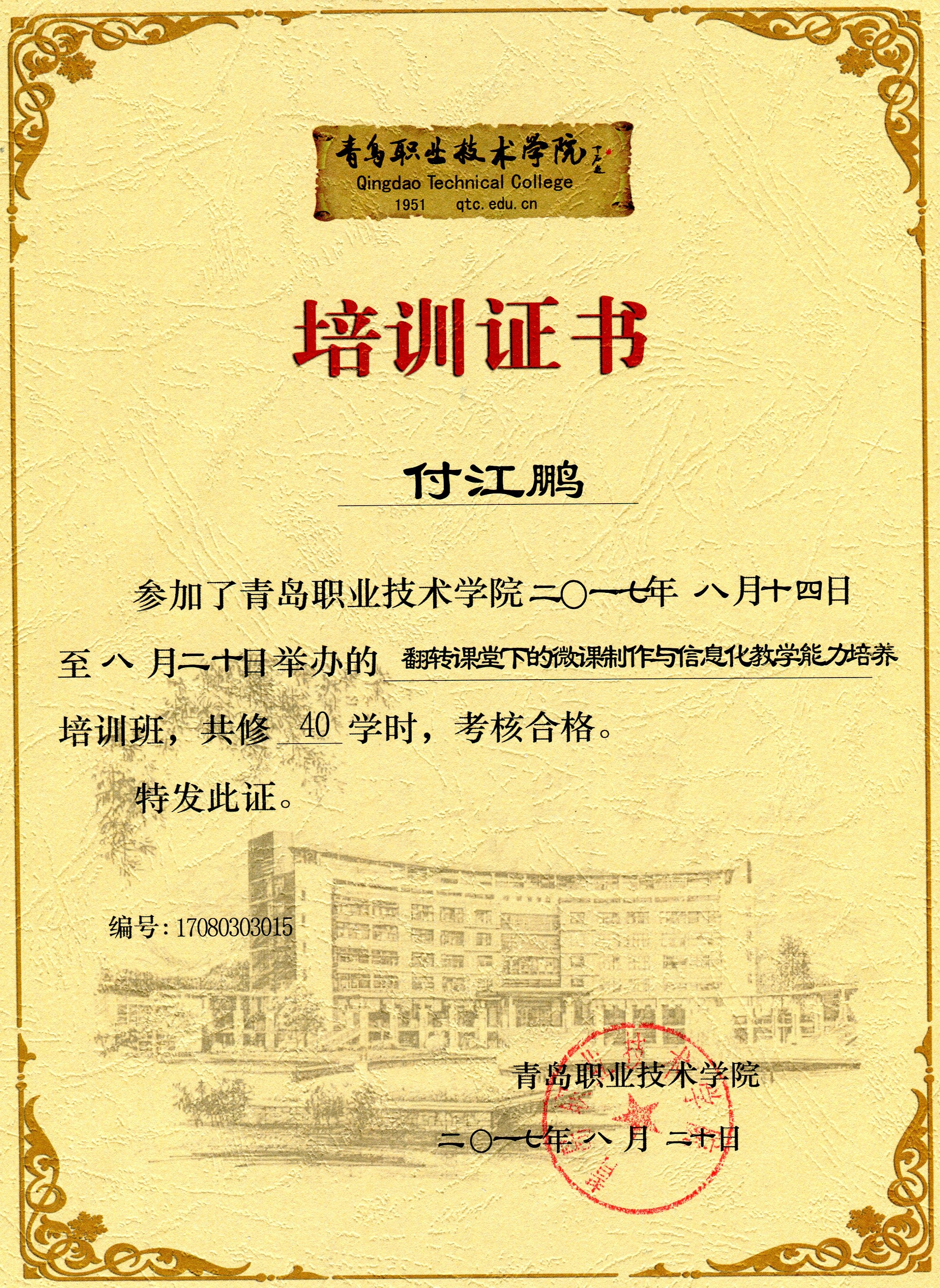 2017.8.14-8.20,我參加了由山東省教育廳在青島職業(yè)技術(shù)學院舉辦的《高校教師教學能力、信息技術(shù)與專業(yè)素養(yǎng)提升高級培訓班》聯(lián)盟培訓班。