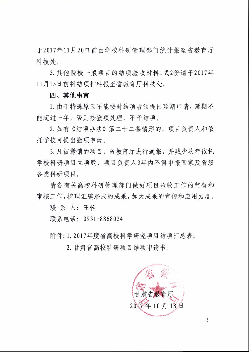轉(zhuǎn)發(fā)甘肅省教育廳關(guān)于對2017年度甘肅省高等學(xué)??茖W(xué)研究項(xiàng)目進(jìn)行結(jié)項(xiàng)驗(yàn)收工作安排的通知