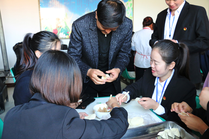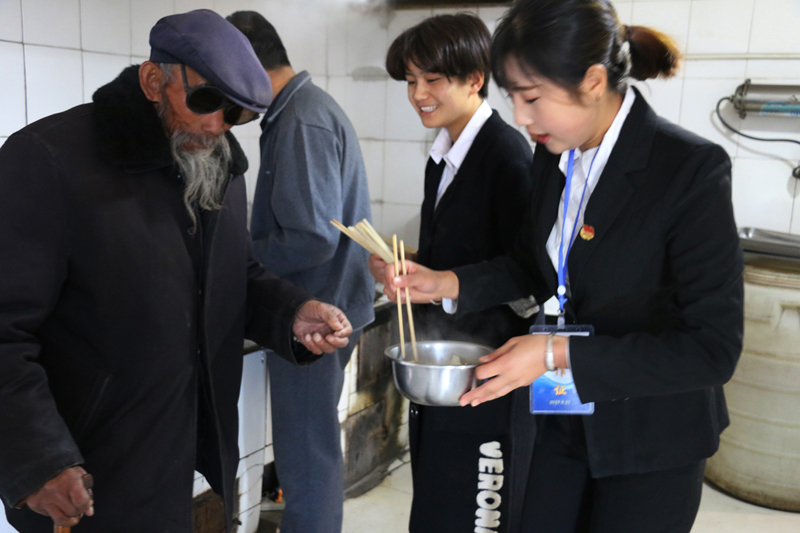 上午八點(diǎn)半,醫(yī)學(xué)技術(shù)與信息管理系各位黨員、入黨積極分子、團(tuán)學(xué)干部、師生代表在廚房為老人包餃子,并整理被褥;康復(fù)治療專業(yè)教師黨員高萬(wàn)飛為老人講解“如何健康養(yǎng)生”;系團(tuán)總支為老人們送上毛巾、牙膏、香皂等日常生活用品;愛(ài)牙協(xié)會(huì)的志愿者為老人,進(jìn)行牙齒檢查,講解如何愛(ài)護(hù)牙齒;中醫(yī)養(yǎng)生協(xié)會(huì)的志愿者為老人們測(cè)血壓,演示常用的按摩方法。中午時(shí)分,老人們吃著熱氣騰騰的餃子,看著全系師生代表為老人們準(zhǔn)備的精彩節(jié)目,臉上洋溢著幸福的笑容。