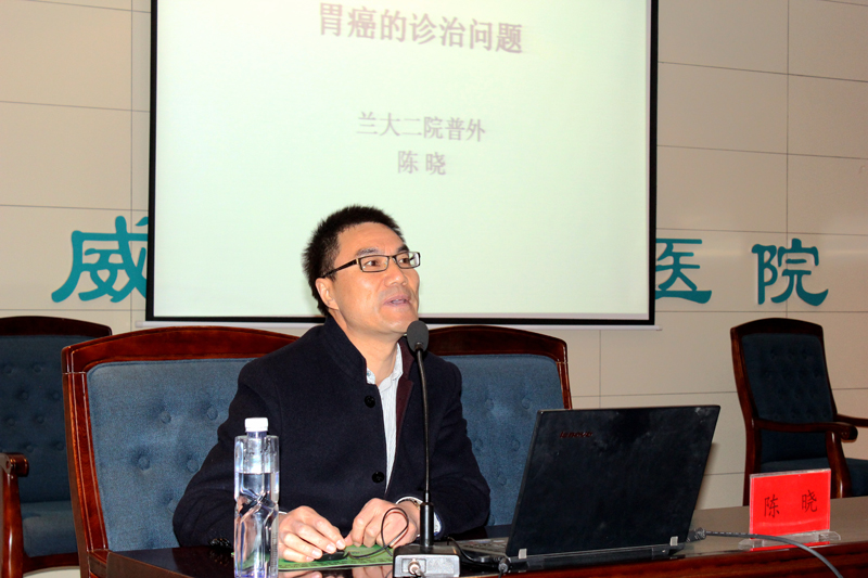 醫(yī)院邀請到蘭州大學(xué)第二醫(yī)院普外三科主任、胃腸外科主任、主任醫(yī)師陳曉和普外二科副主任,副主任醫(yī)師康博雄為大家作學(xué)術(shù)講座。陳曉主講了《胃癌的診治問題》,并與大家分享了他在法國醫(yī)院和美國醫(yī)院進(jìn)修學(xué)習(xí)時的一些感想和見聞。陳曉在講座中結(jié)合臨床體會說:許多胃癌患者在就診時已經(jīng)發(fā)展為中晚期,失去了手術(shù)機(jī)會。他呼吁全社會要認(rèn)識到對胃癌高發(fā)地區(qū)、高危年齡、高危人群進(jìn)行篩查的必要性。醫(yī)生要對有癥狀的患者及早進(jìn)行胃鏡檢查,爭取做到早發(fā)現(xiàn)、早診斷、早治療。講座中,陳曉就外科手術(shù)吻合方式選擇與直屬附屬醫(yī)院外科主任滕志勇醫(yī)生進(jìn)行了現(xiàn)場互動。