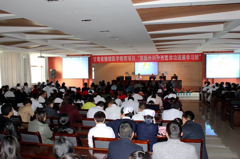 2017年10月28日早上8.30分,直屬附屬醫(yī)院在內(nèi)科七樓會議室舉辦的省級繼續(xù)教育項(xiàng)目:胃腸外科中西醫(yī)診治進(jìn)展學(xué)習(xí)班,蘭州大學(xué)第二醫(yī)院兩位胃腸病外科專家作學(xué)術(shù)講座。