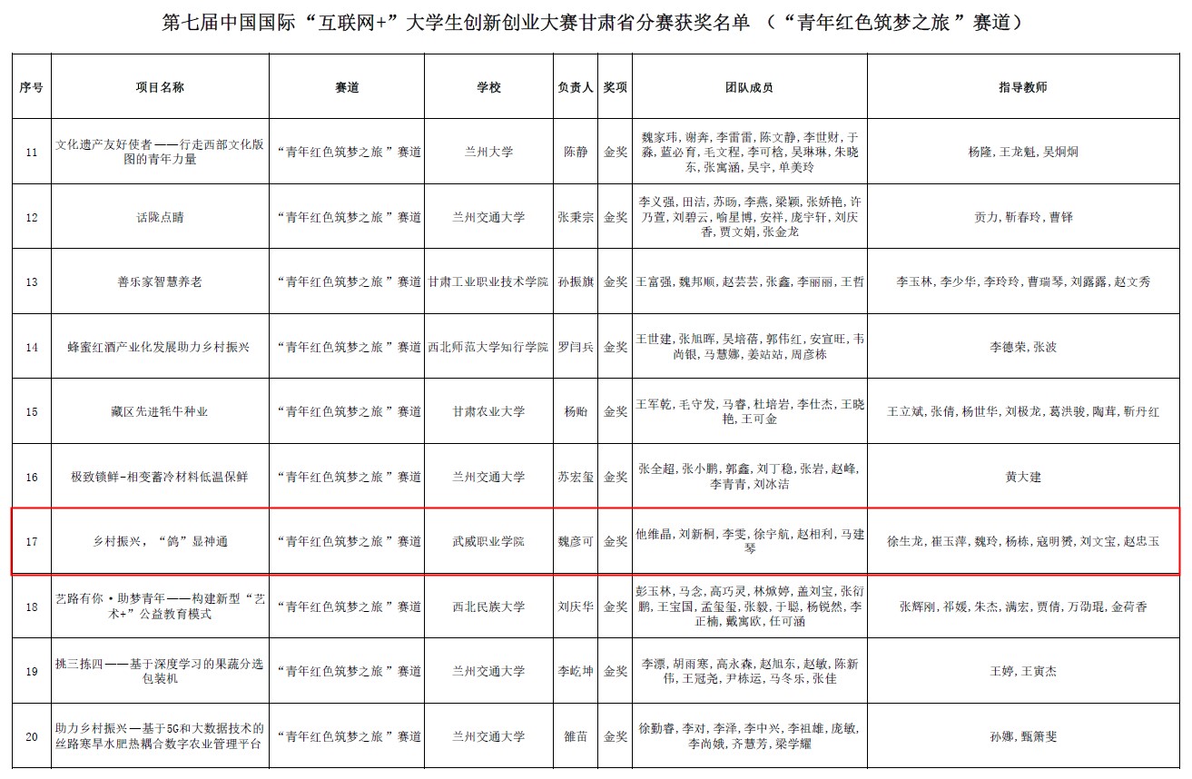 第七屆中國(guó)國(guó)際“互聯(lián)網(wǎng)+”大學(xué)生創(chuàng)新創(chuàng)業(yè)大賽甘肅省分賽“青年紅色筑夢(mèng)之旅”賽道《鄉(xiāng)村振興,“鴿”顯神通》