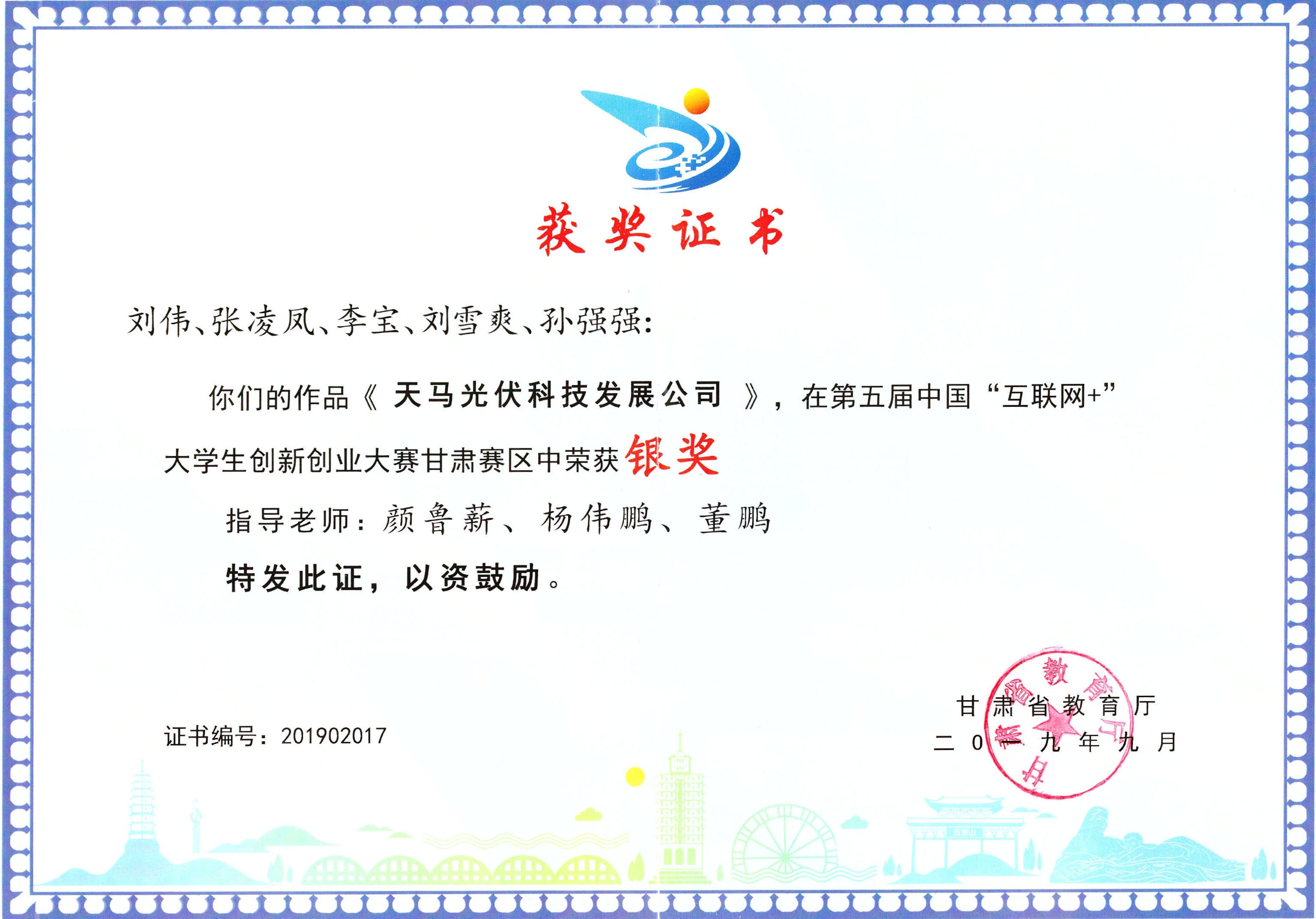 第五屆中國(guó)“互聯(lián)網(wǎng)+”大學(xué)生創(chuàng)新創(chuàng)業(yè)大賽甘肅賽區(qū)《天馬光伏科技發(fā)展公司》