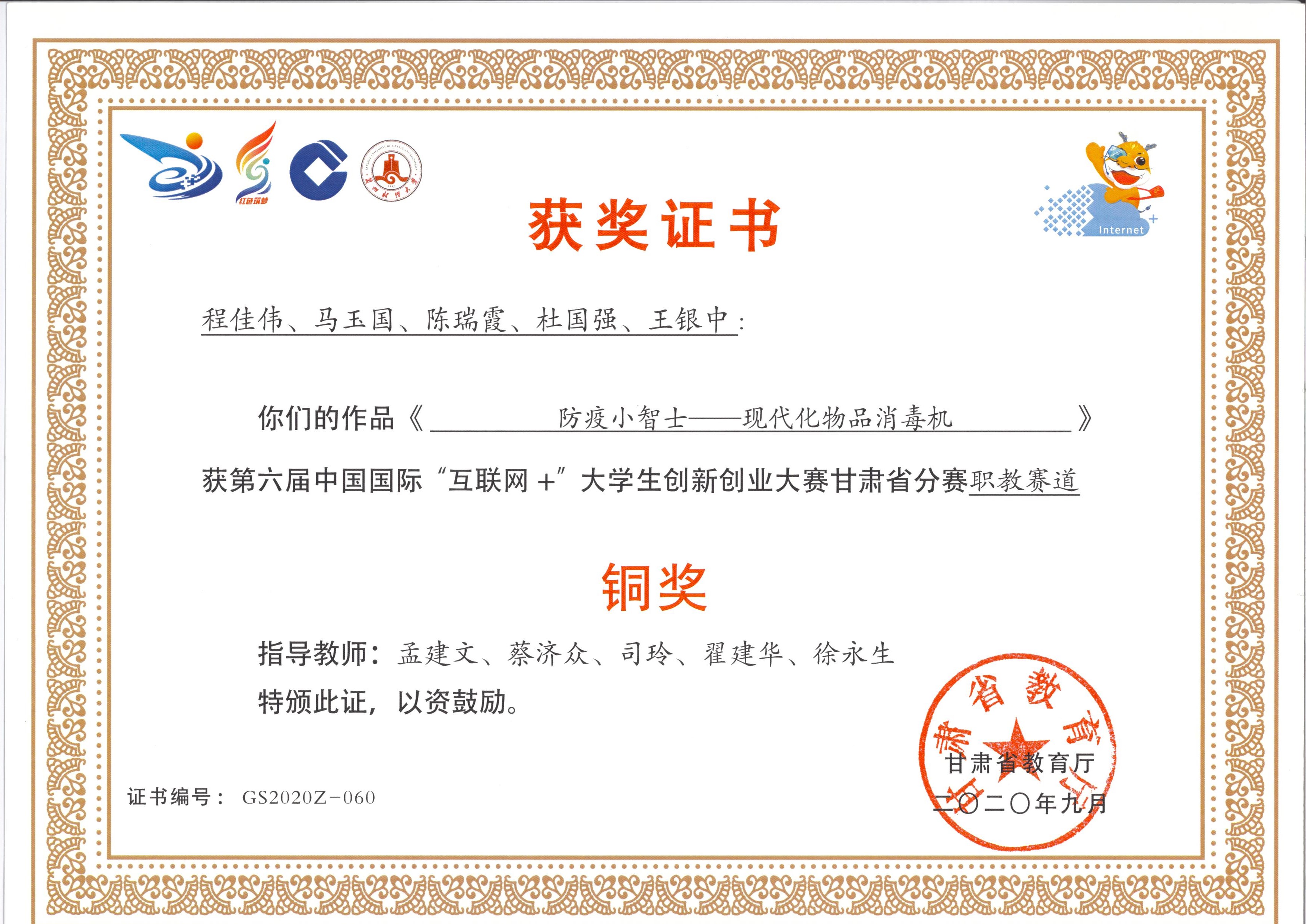 第六屆中國(guó)國(guó)際“互聯(lián)網(wǎng)+”大學(xué)生創(chuàng)新創(chuàng)業(yè)大賽甘肅省分賽職教賽道《防疫小智士—現(xiàn)代化物品消毒機(jī)》