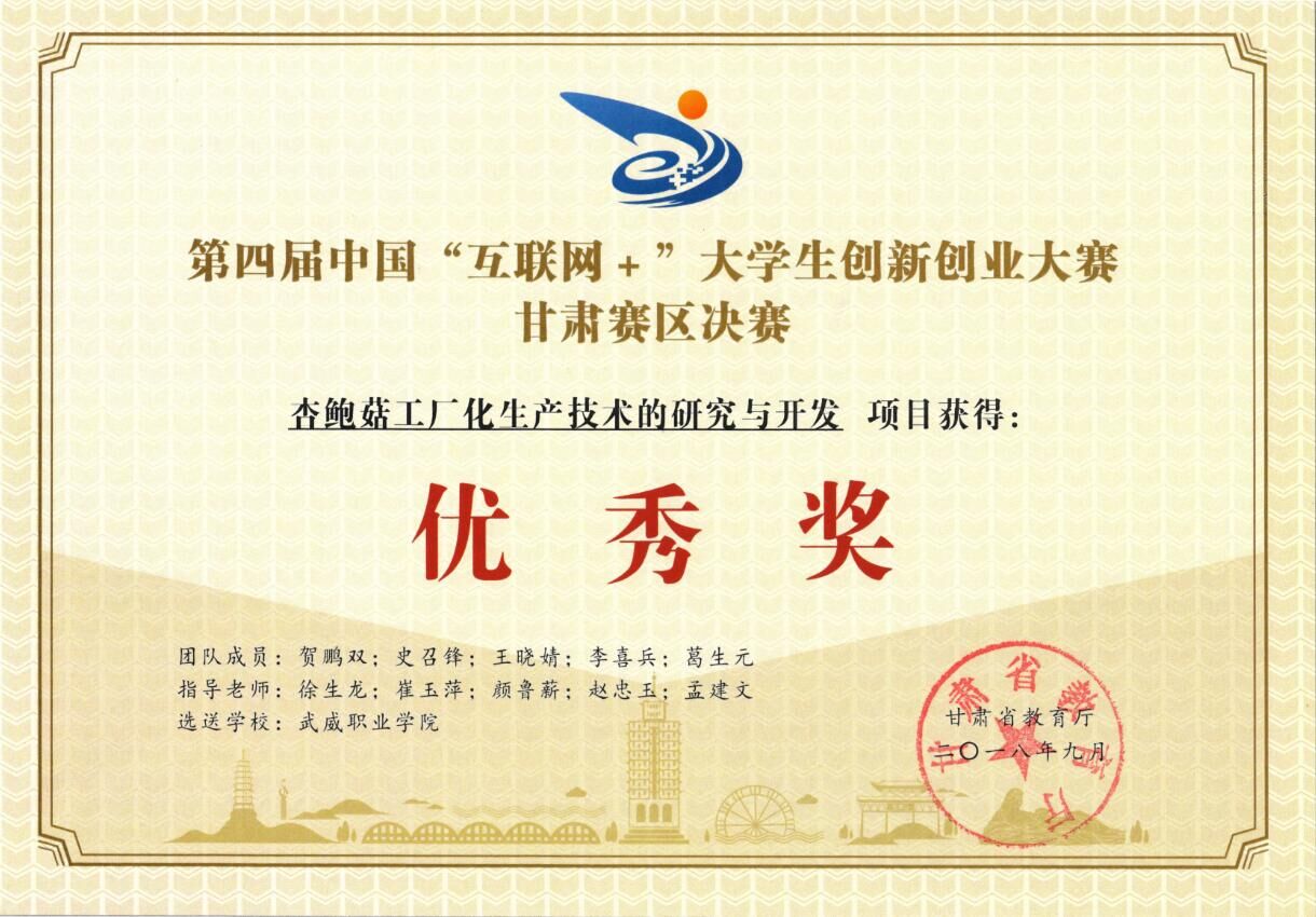 第四屆中國(guó)“互聯(lián)網(wǎng)+”大學(xué)生創(chuàng)新創(chuàng)業(yè)大賽甘肅賽區(qū)決賽《杏鮑菇工廠化生產(chǎn)技術(shù)的研究與開發(fā)》