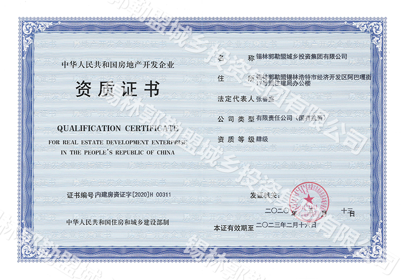 中華人民共和國房地產(chǎn)開發(fā)企業(yè)資質(zhì)證書